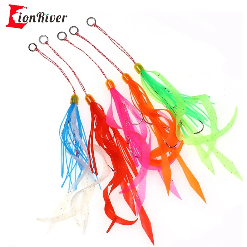 5 uds faldas de goma de silicona con ganchos asistidos gemelos para Marlin Inchiku Tai / Kabura Slider Jig señuelo agua salada snapper mero