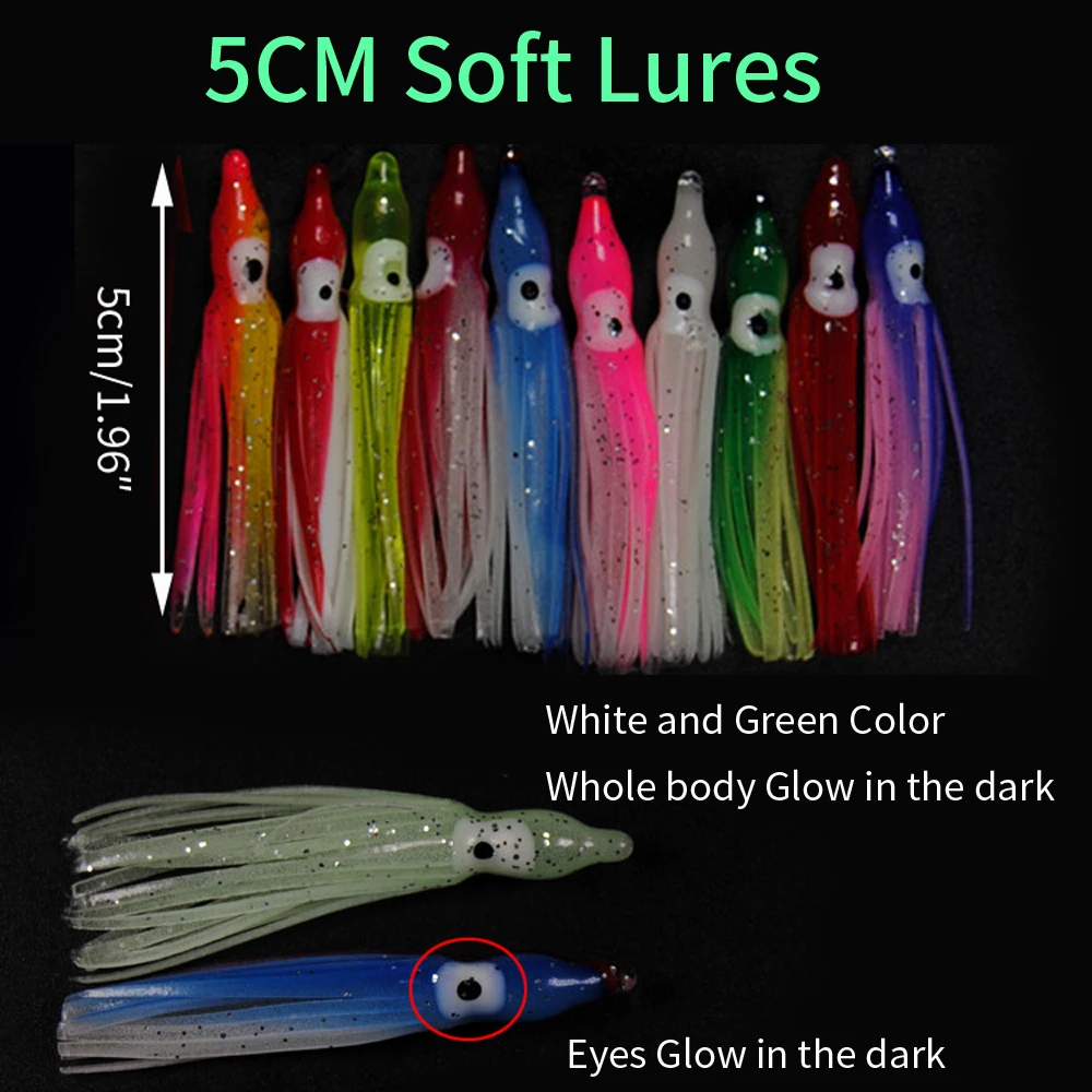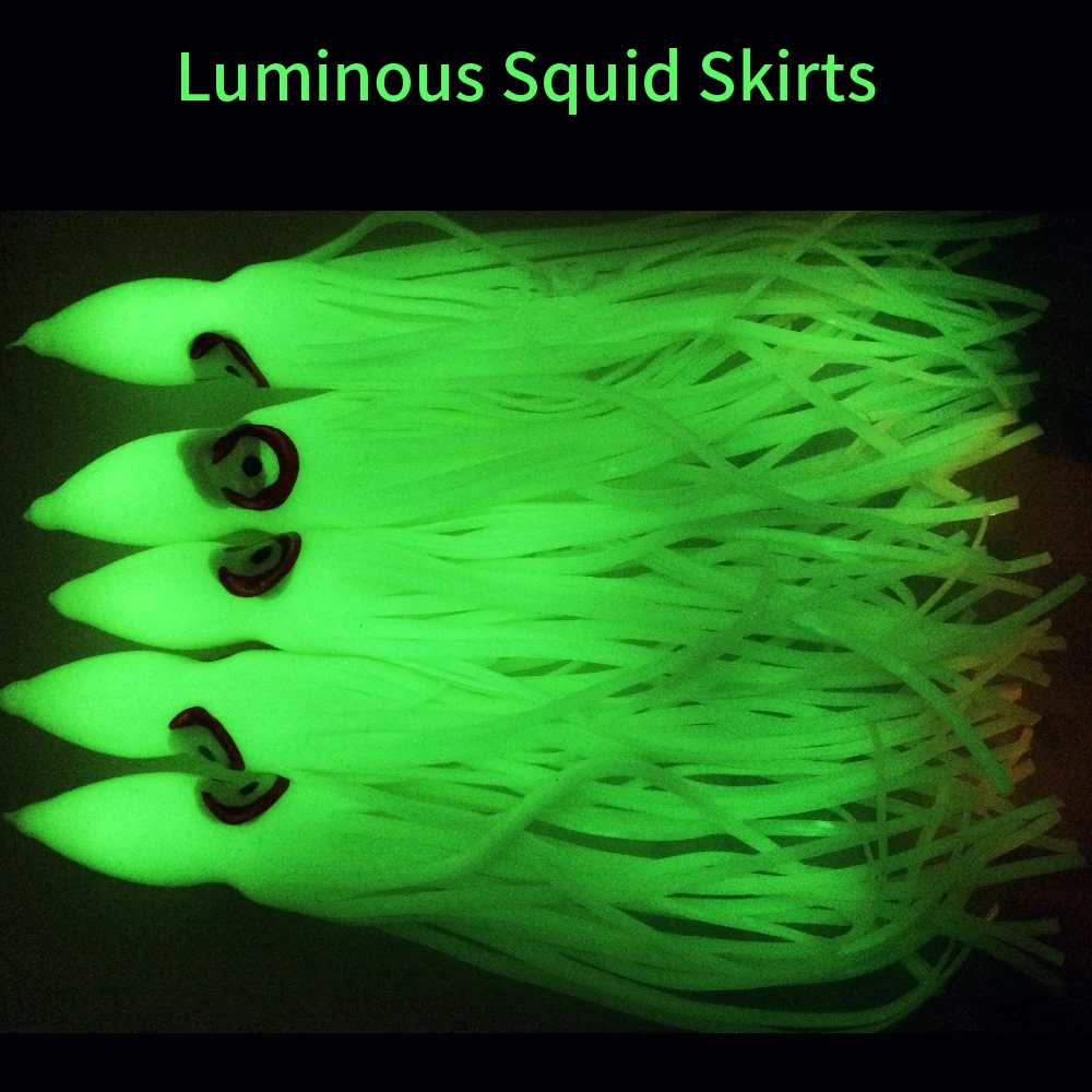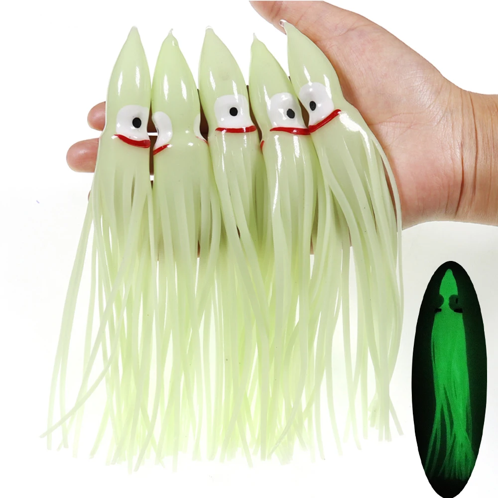 Faldas luminosas de calamar de 5-18cm, señuelo suave para pesca nocturna, señuelo de pesca, pulpo brillante, cebo Artificial de goma para pesca en agua salada