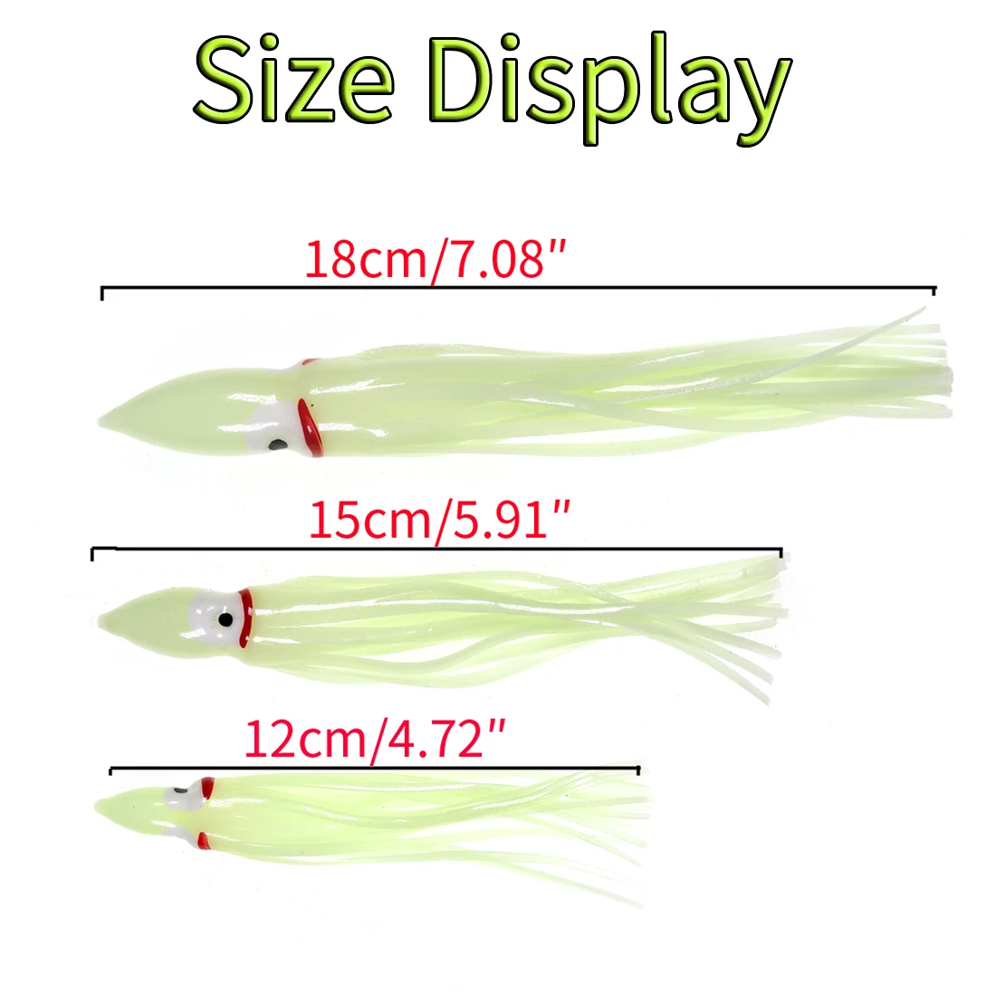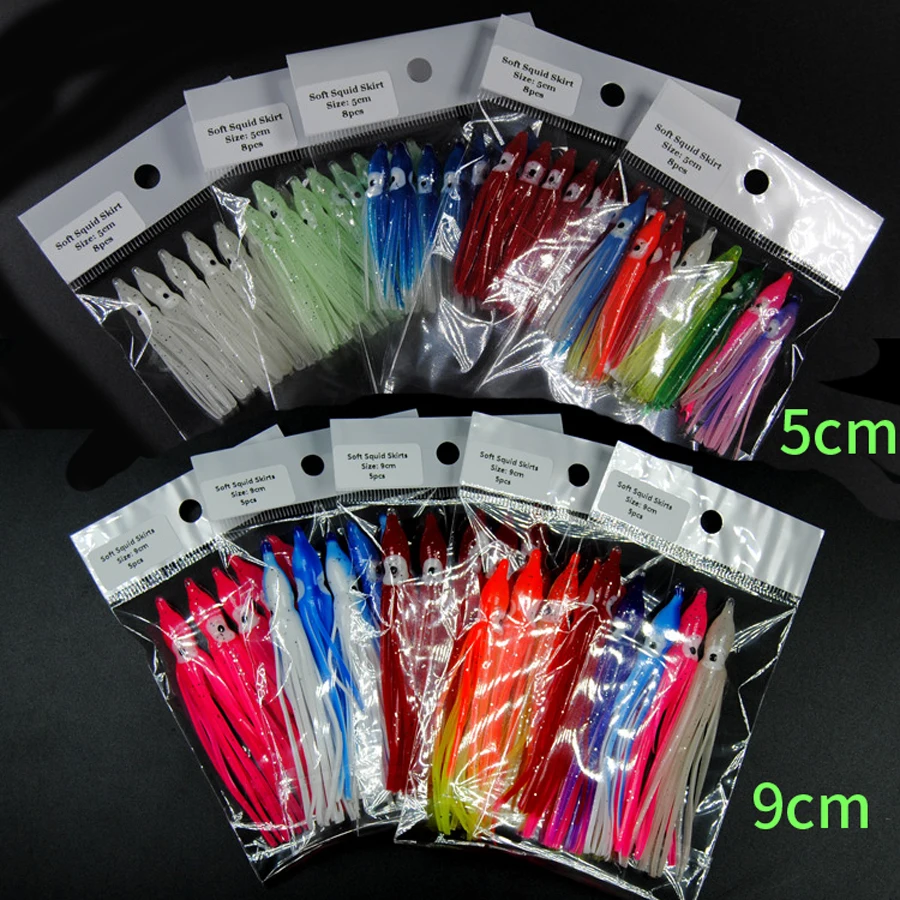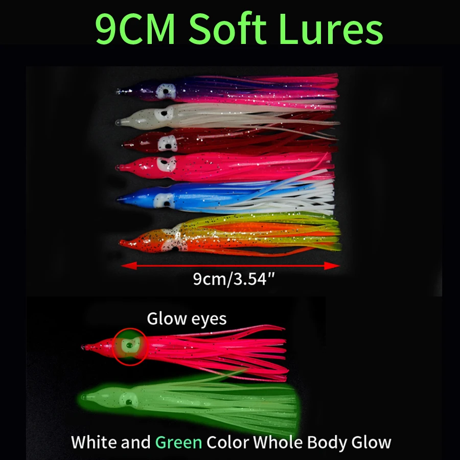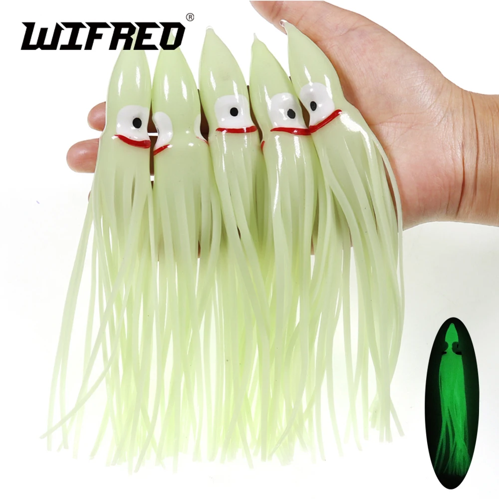 Faldas luminosas de calamar de 5-18cm, señuelo suave para pesca nocturna, señuelo de pesca, pulpo brillante, cebo Artificial de goma para pesca en agua salada
