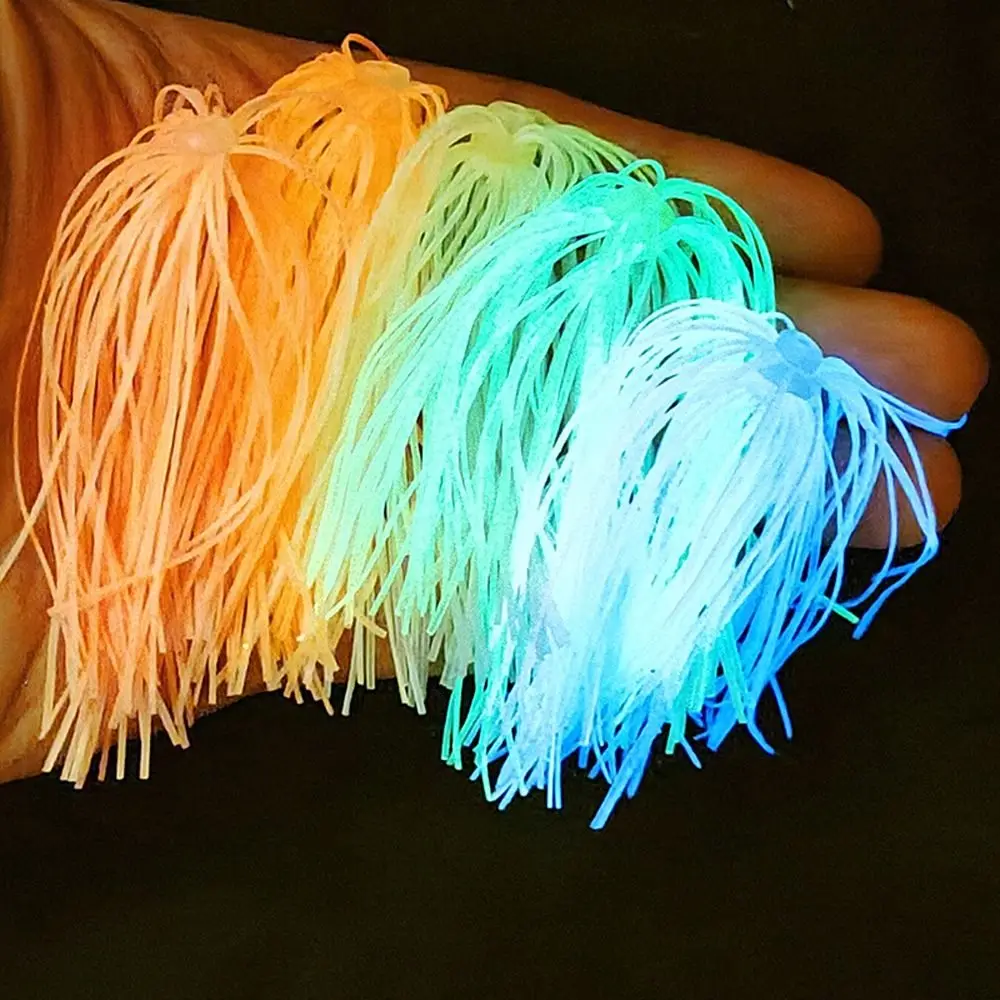 Application: rubber jig skirts Silicone jigger replacements are widely used in many kinds of fishing lures, such as frog buzzer bait, buzzer bait, spoon, jig bait