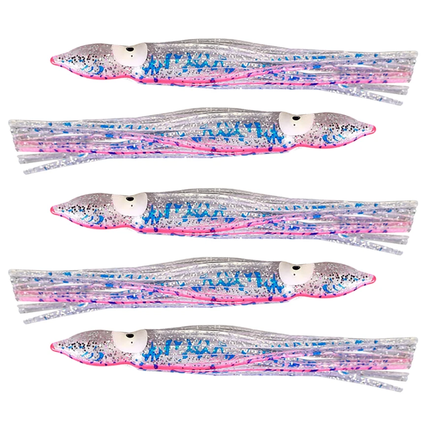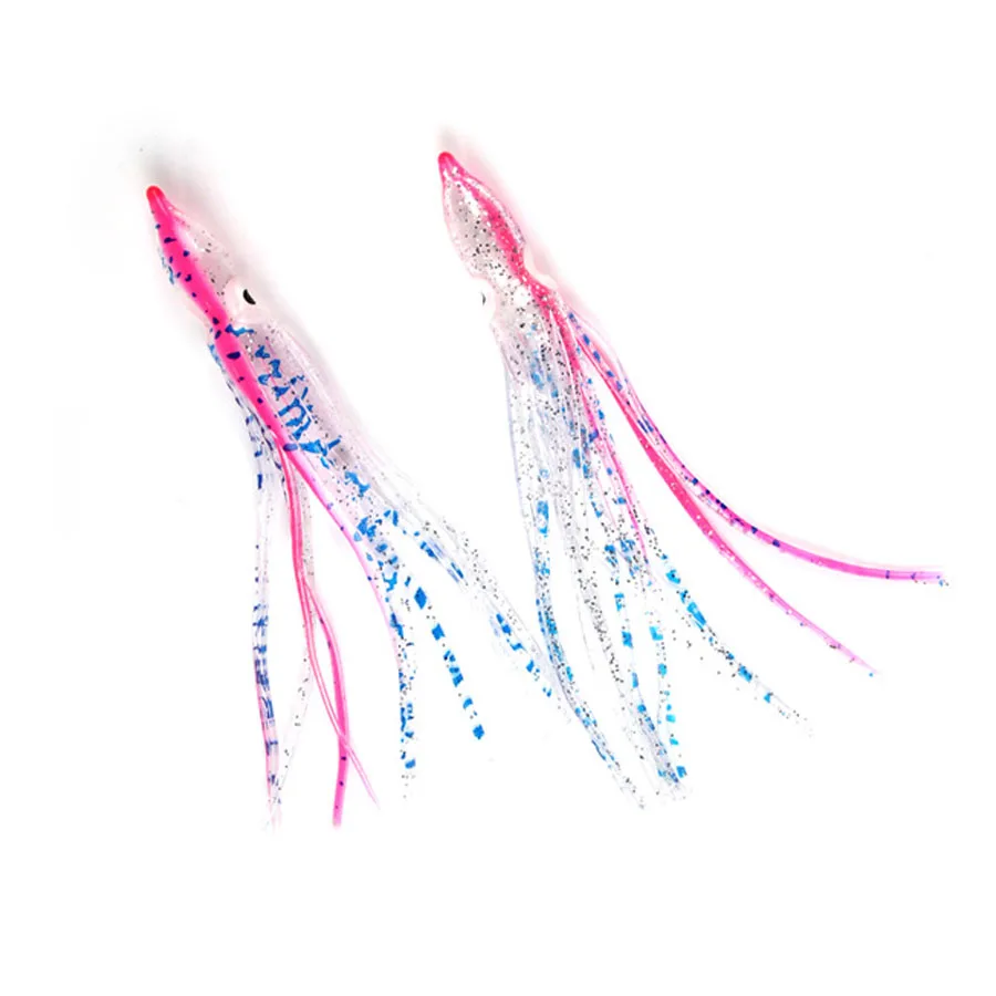 ATRACTIVA FALDA DE CALAMAR: los señuelos de calamar están hechos de goma de PVC de primera calidad, suave y resistente, resiste el abuso de esas especies de monstruos con dientes y feroces en el mar.