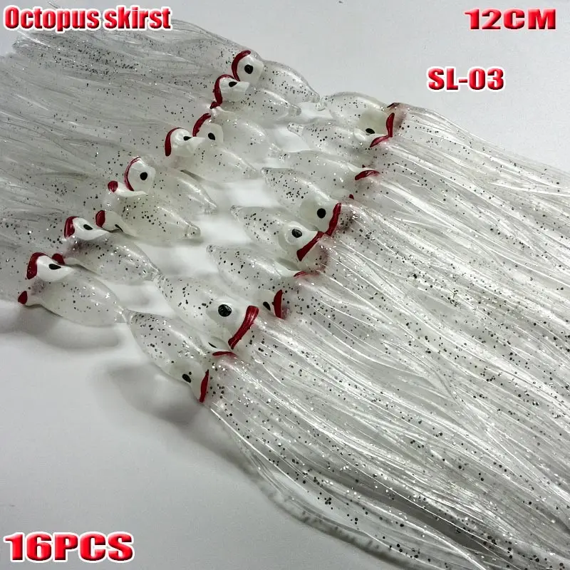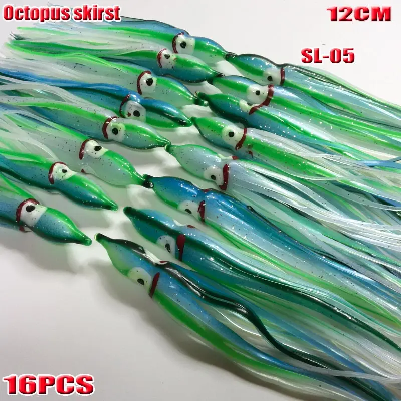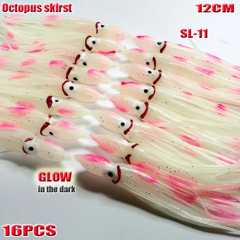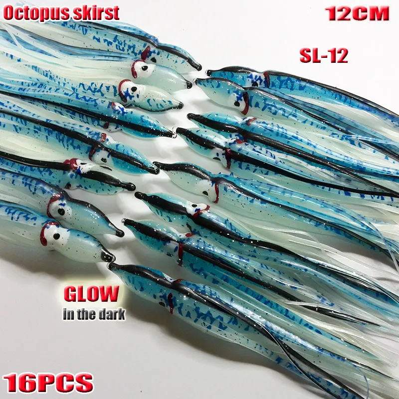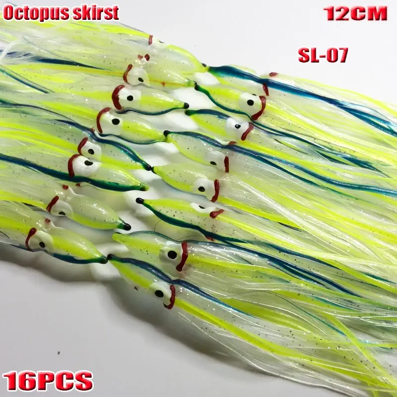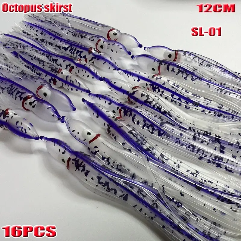 Faldas de pulpo suaves para pesca, novedad de 2024, 16 unids/lote, la longitud es de 12CM