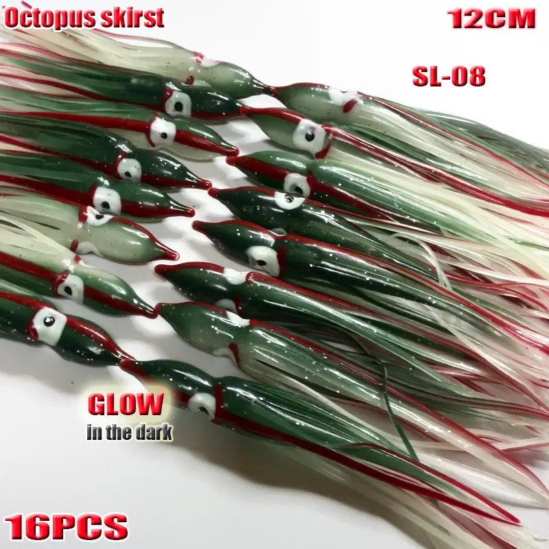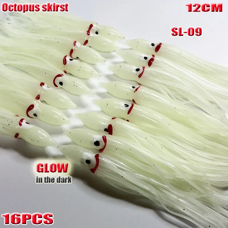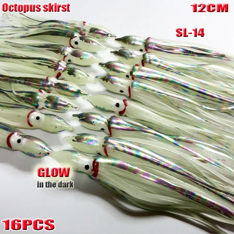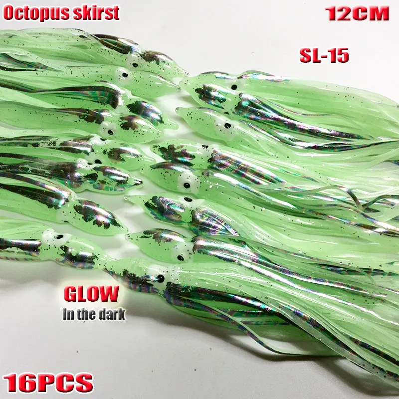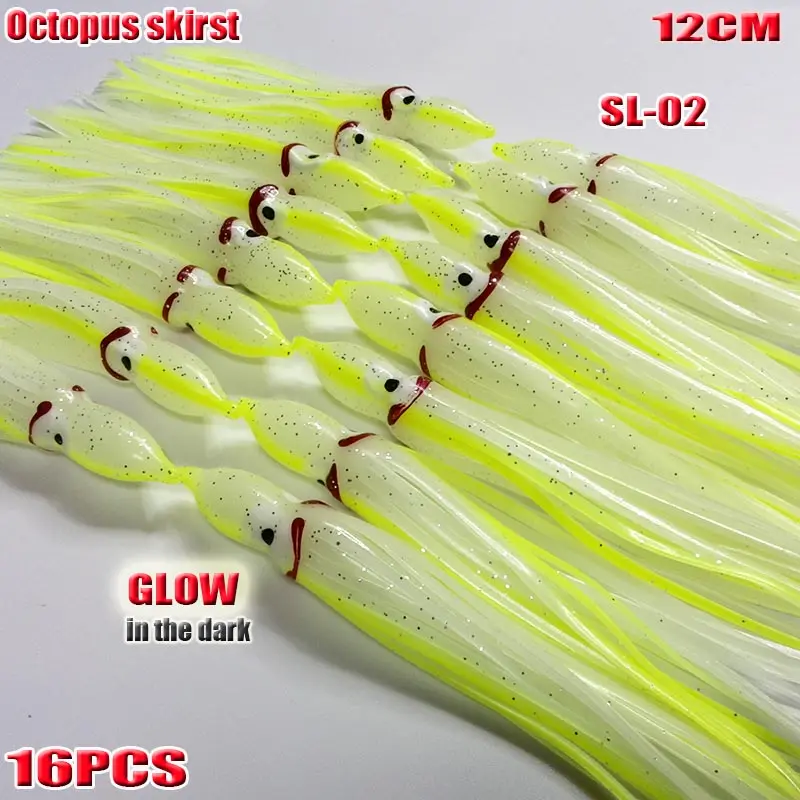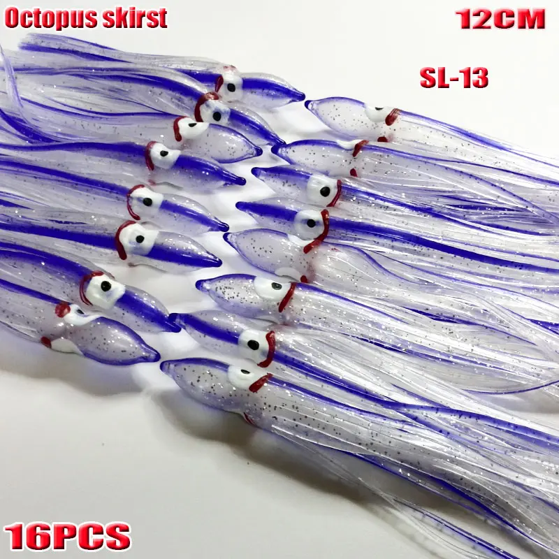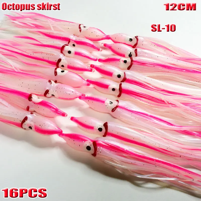 Faldas de pulpo suaves para pesca, novedad de 2024, 16 unids/lote, la longitud es de 12CM