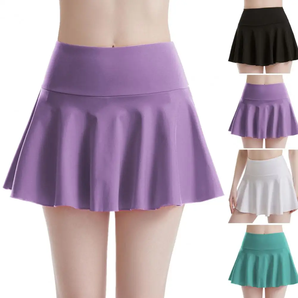 Faldas de tenis para mujer con bolsillos Color sólido ligero suave elástico transpirable correr deportes Golf falda para niña