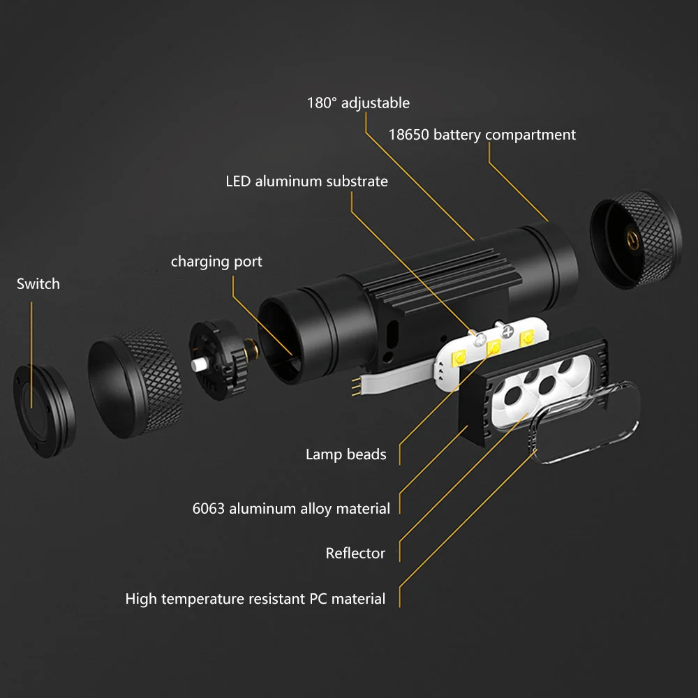 ● Linterna de cabeza resistente al agua: Faro impermeable superbrillante, amplia vida útil de salida de LED puede llegar hasta 100.000 horas.