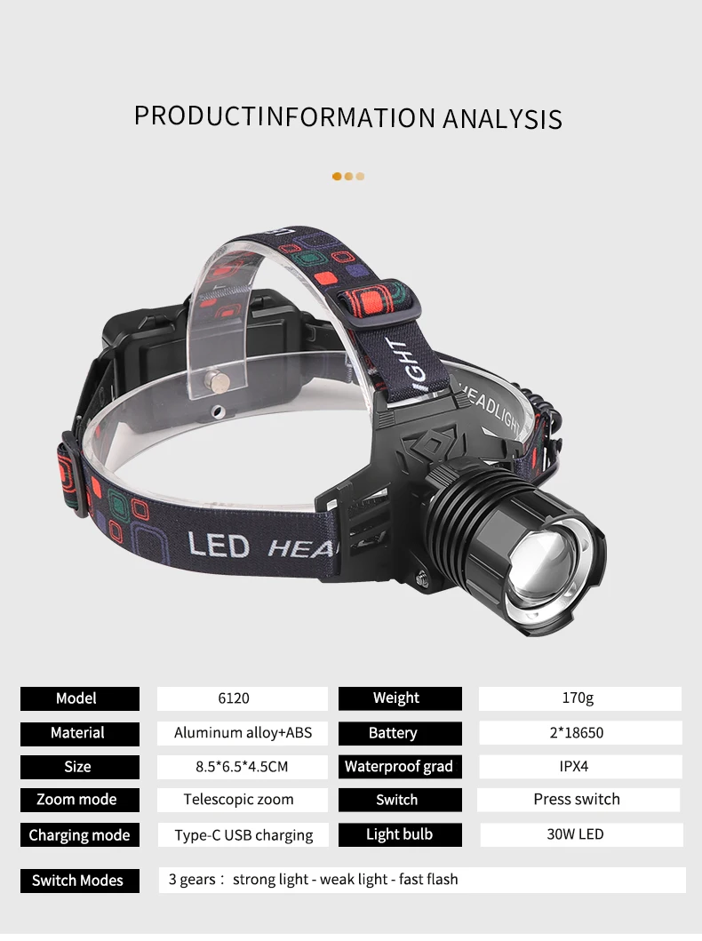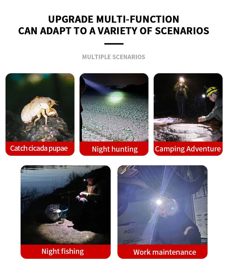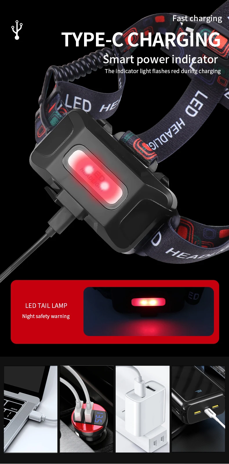 Faro LED portátil con carga USU, resistente al agua, multifuncional, iluminación para acampar al aire libre, accesorios de equipo de pesca