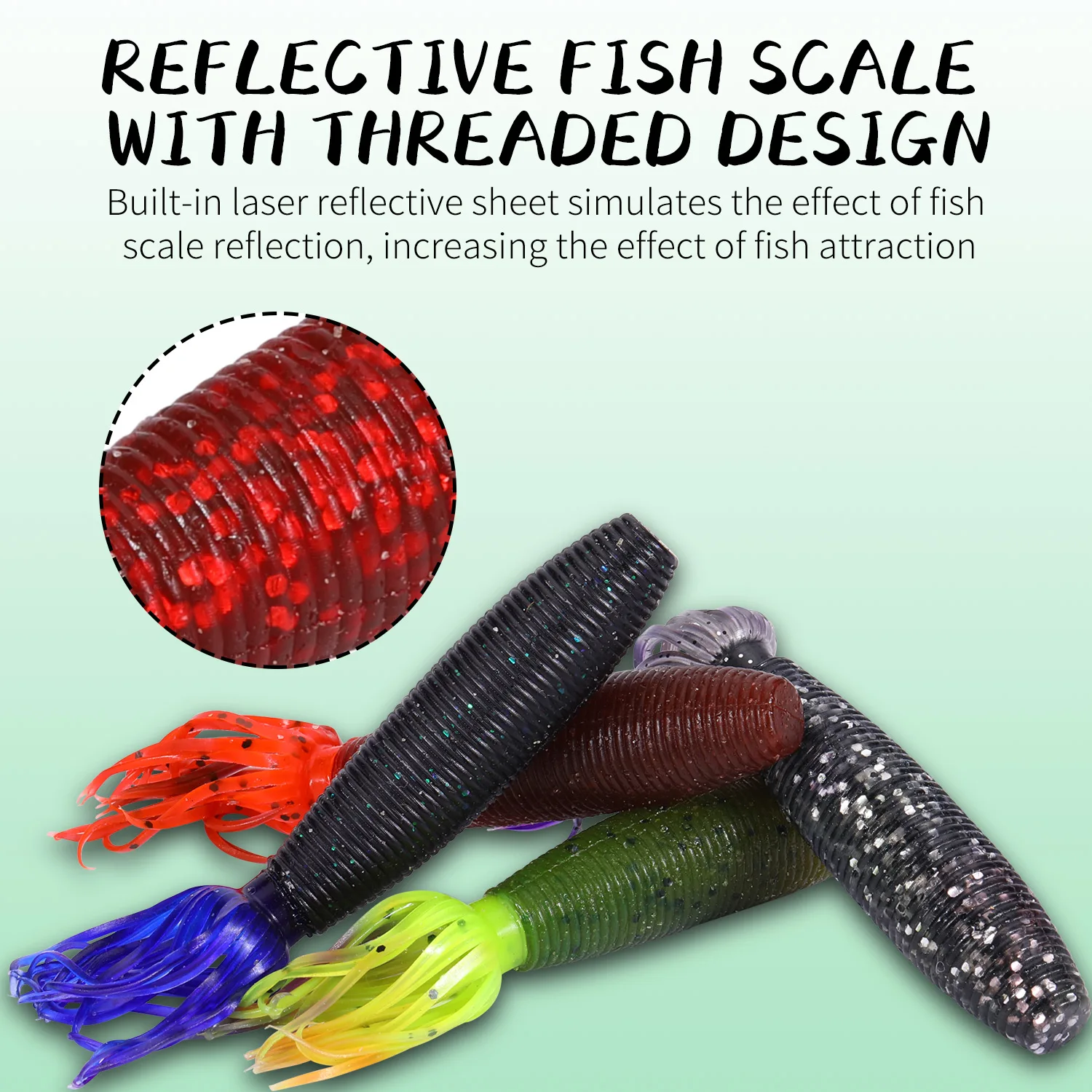 Fat Ika 5-Señuelo de pesca suave, señuelo de silicona para pesca, perca de lubina negra, Zander, 5mm, 95mm, 10g