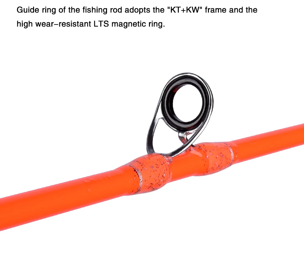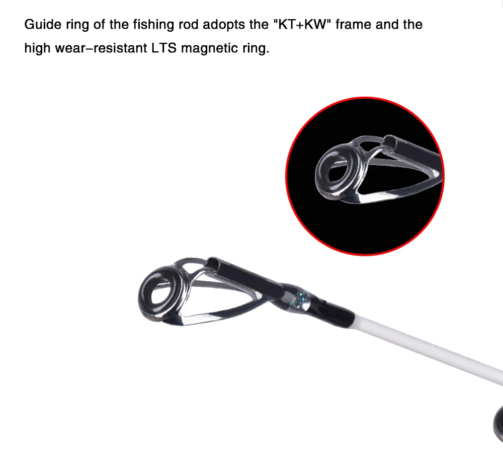 2. El anillo guía de la caña de pescar adopta el Marco "KT + KW" y el anillo magnético LTS de alta resistencia al desgaste;