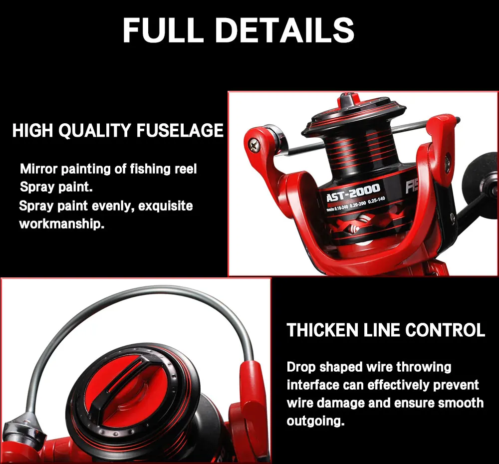 + Carrete de aluminio exclusivo Shark Fin Braid Ready, ya no es necesario utilizar la línea de respaldo cuando se enrolla en la línea de pesca trenzada.