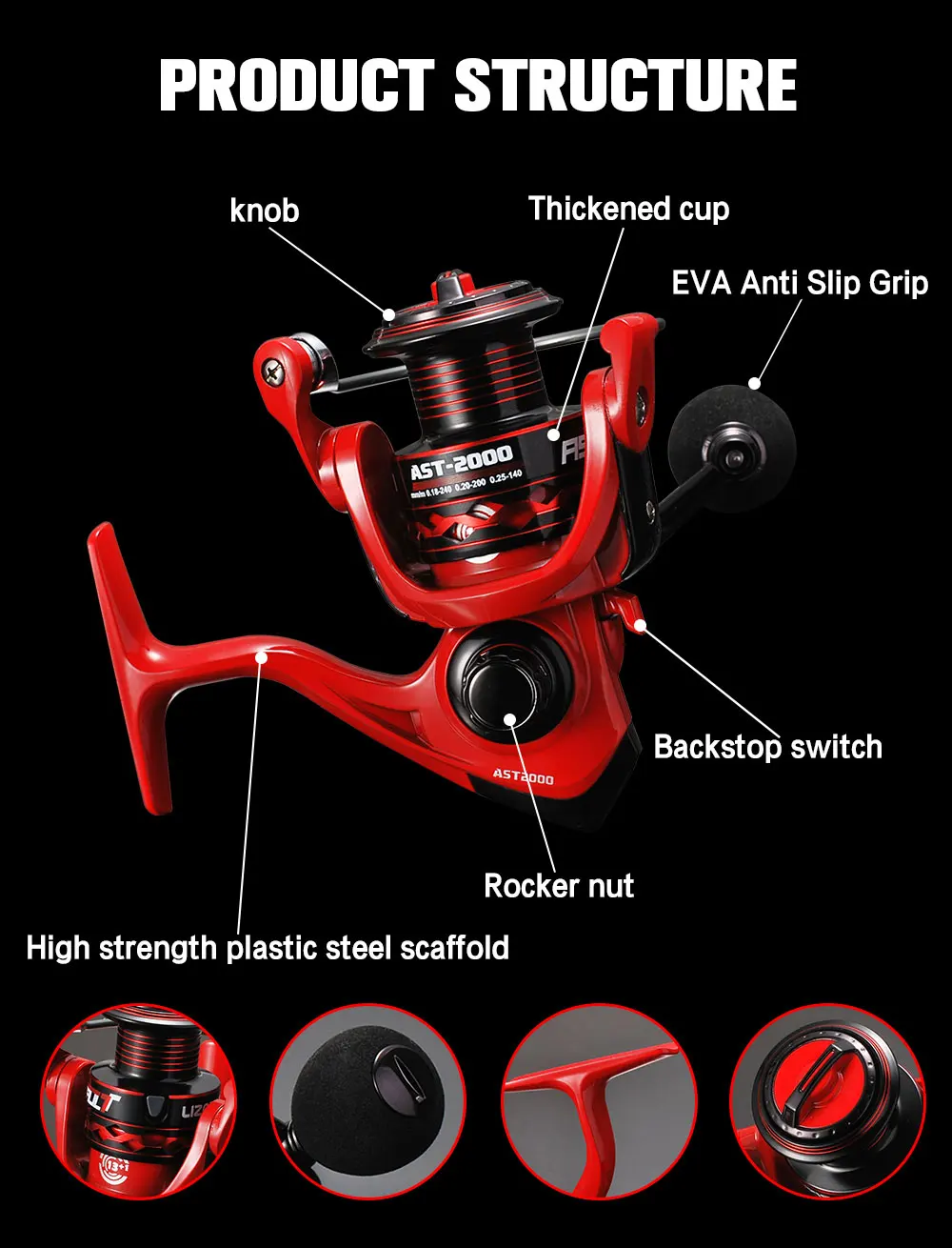 + Bloqueo instantáneo anti-retroceso, herrajes de acero inoxidable, mango de EVA