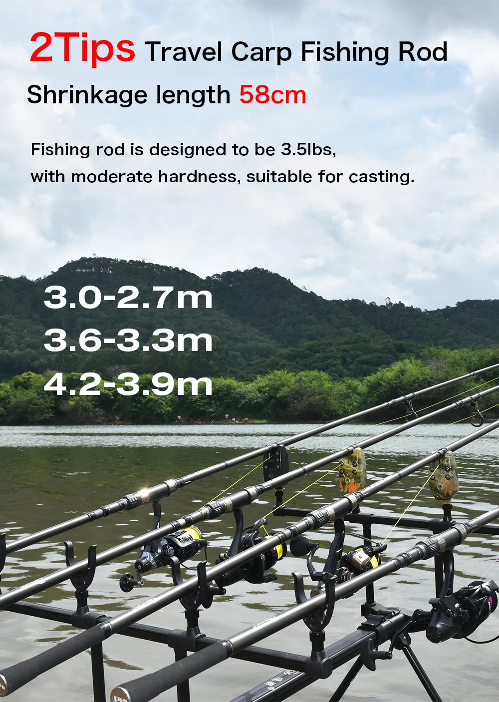 Caña de pescar de carpa de viaje con 2 puntas, 2,7 m, 3,3 m, 3,6 m, 4,2 m