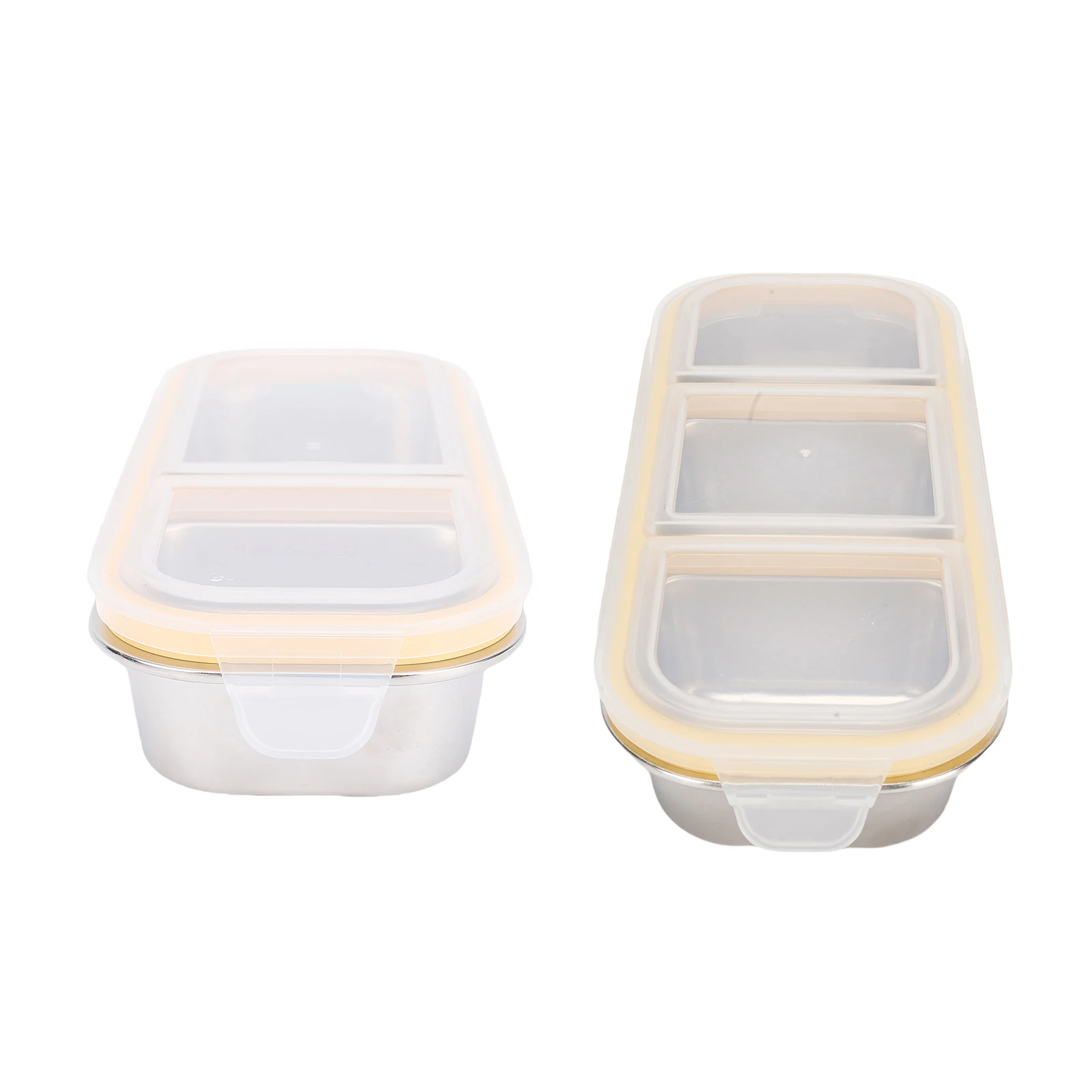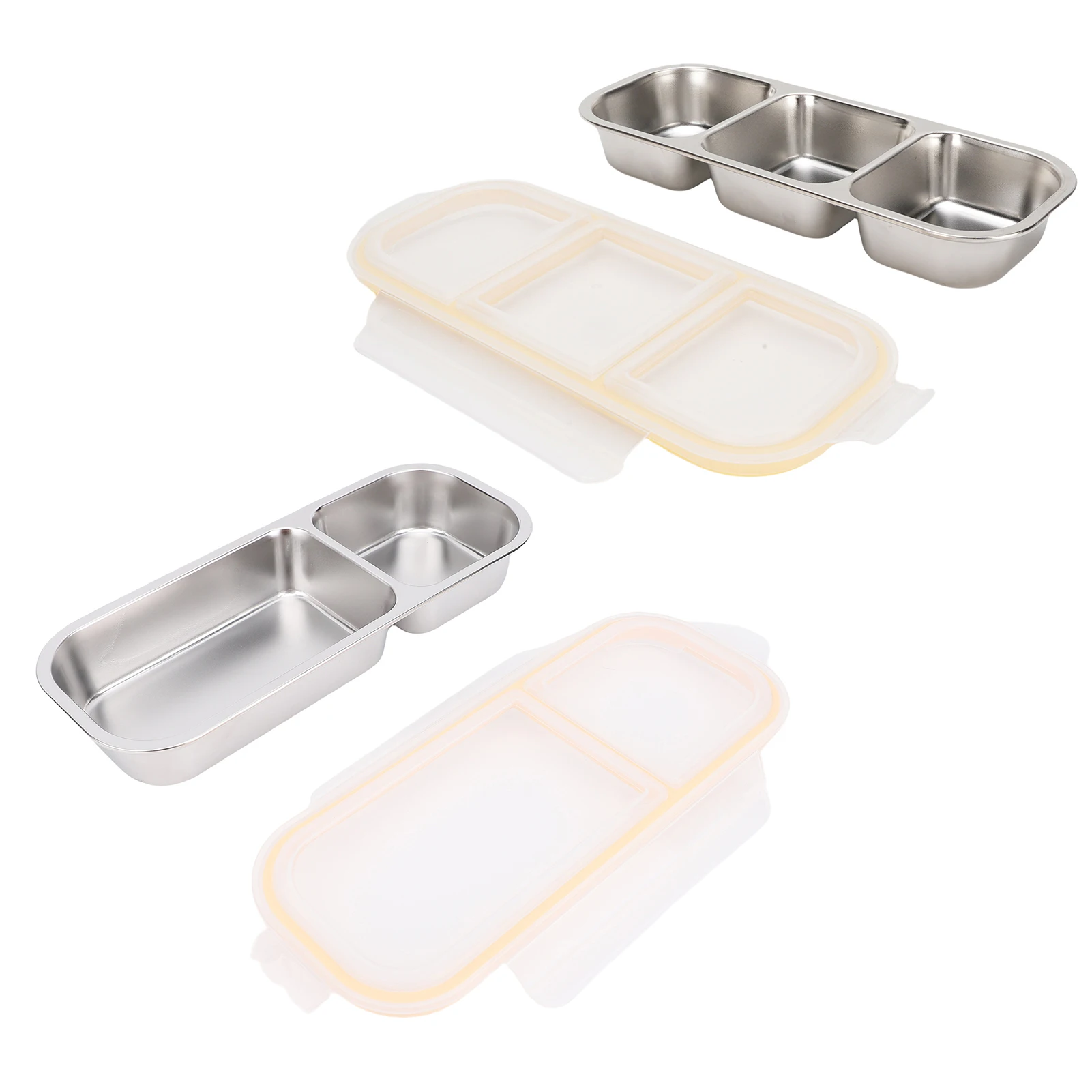 1.Fabricada con materiales de primera calidad: la lonchera está fabricada en acero inoxidable 304 con una tapa transparente, que bloquea eficazmente el polvo para mantener sus refrigerios seguros y evita derrames.