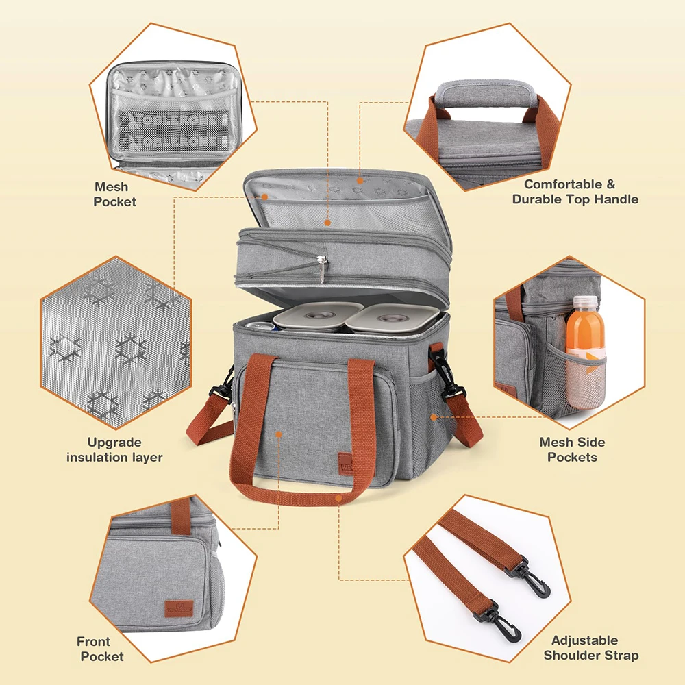【Solución de almuerzo versátil para adultos】: Ya sea que esté empacando un sándwich abundante, una Ensalada Saludable o una comida casera, nuestra bolsa de almuerzo es imprescindible para los adultos. Es más que una simple fiambrera, es una manera de disfrutar de comidas frescas y deliciosas en cualquier lugar y en cualquier momento.