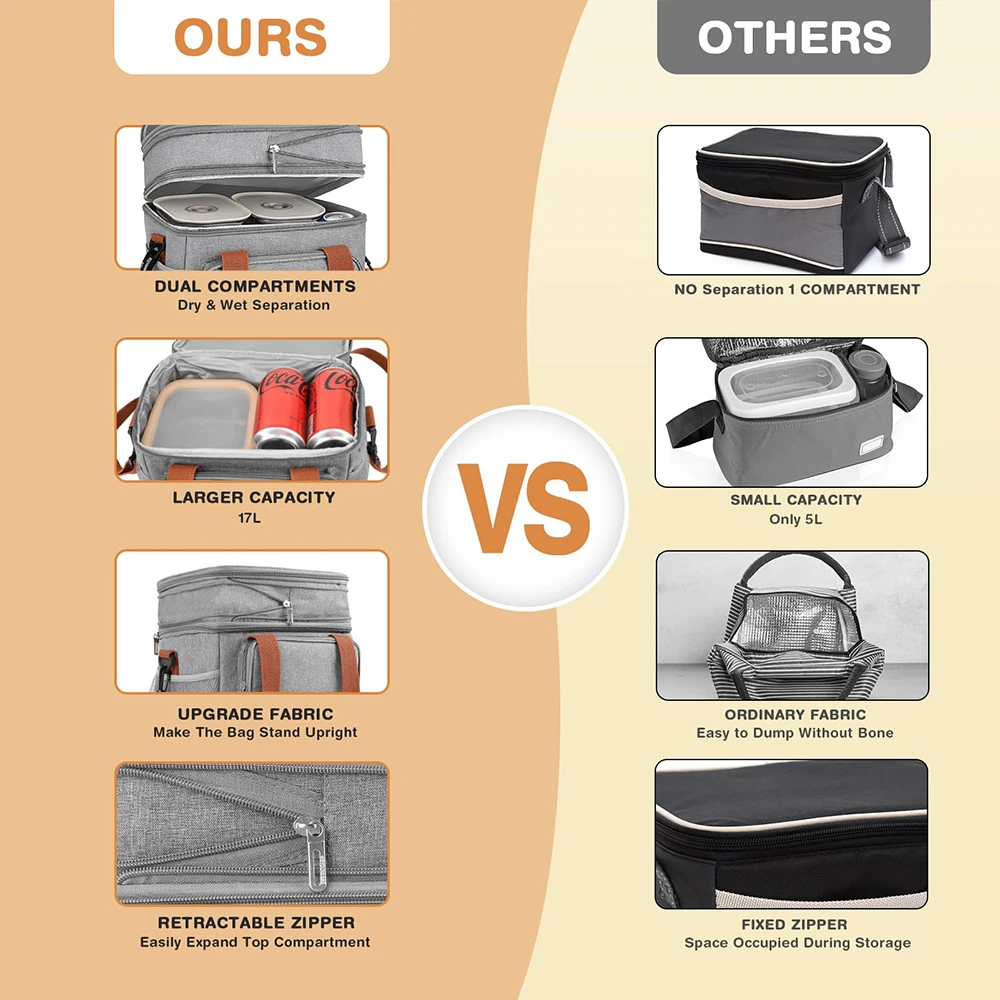 【Material de calidad para un uso duradero 】Elaborada con nailon negro duradero y forrado con papel de aluminio catiónico, esta bolsa de almuerzo de 17L está diseñada para soportar el uso diario mientras mantiene su gran aspecto. No es solo una bolsa de almuerzo, es un transportador de alimentos confiable.
