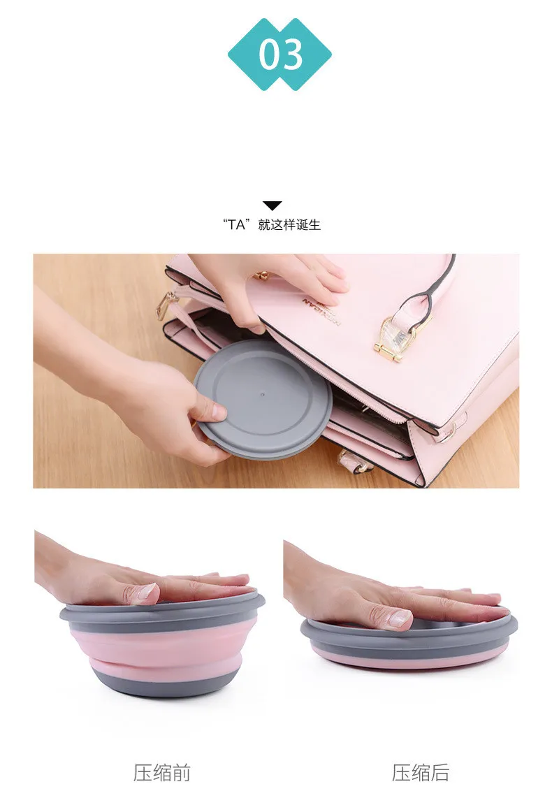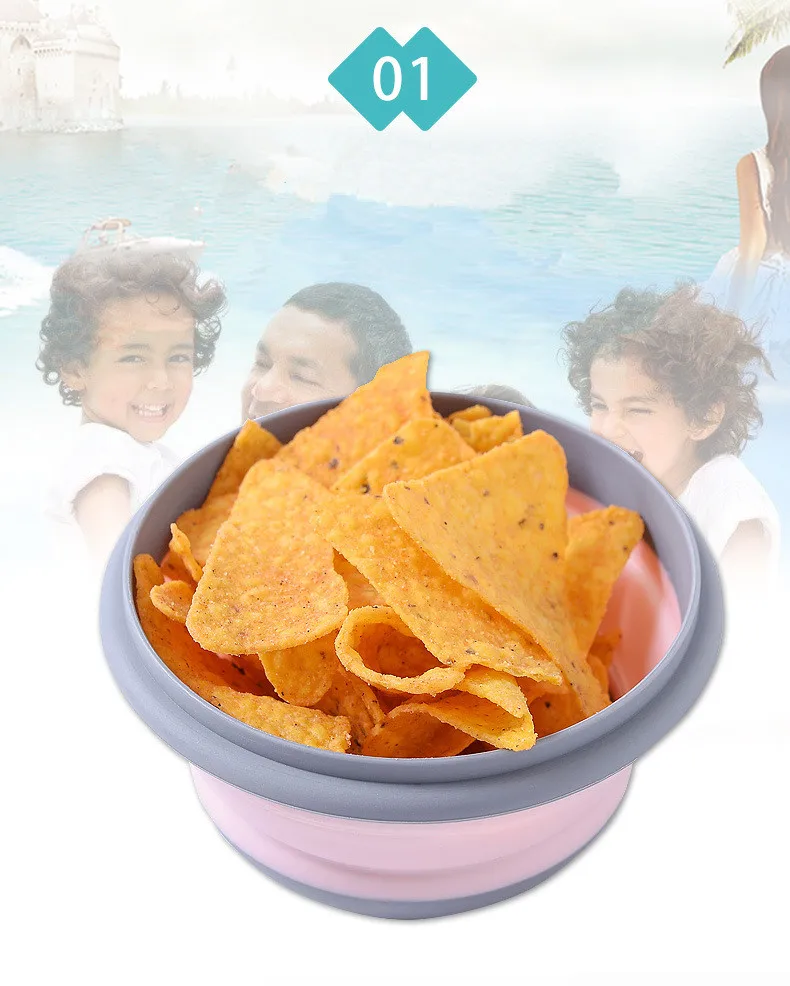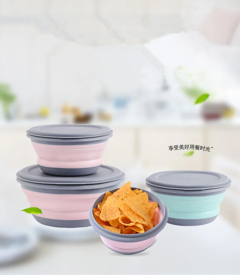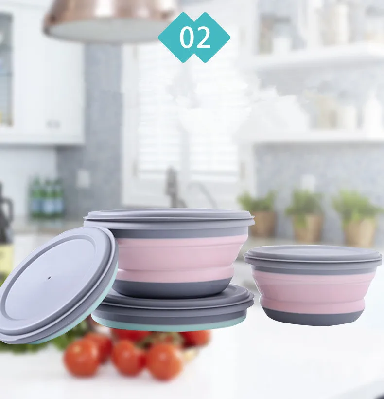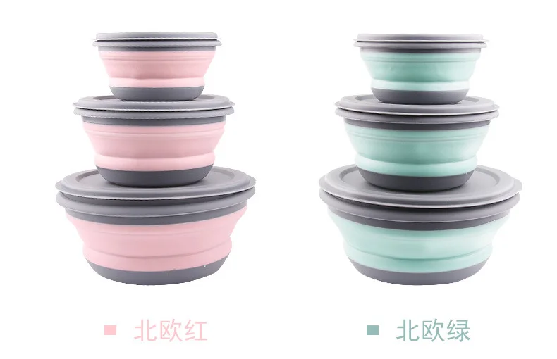 Fiambrera plegable portátil, juego de cuencos de silicona, contenedor de alimentos, vajilla para acampar al aire libre, tazón de ensalada plegable con tapa, 3 piezas por juego
