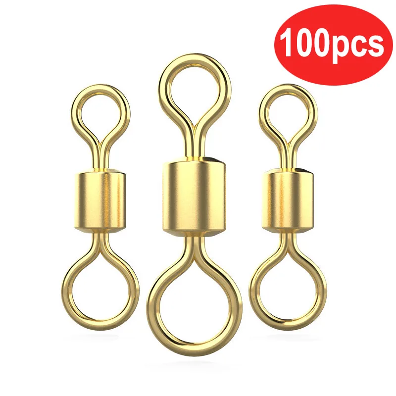 Figura chapada en oro de 100 piezas, anillo Sub-hembra de ocho anillos, conector de grupo de línea, aparejos de pesca, equipo de pesca