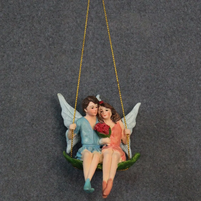 Figuritas de pareja romántica, columpio, flor, Hada, jardín, Micro paisaje, colgante, artesanía de resina, decoración de escena creativa