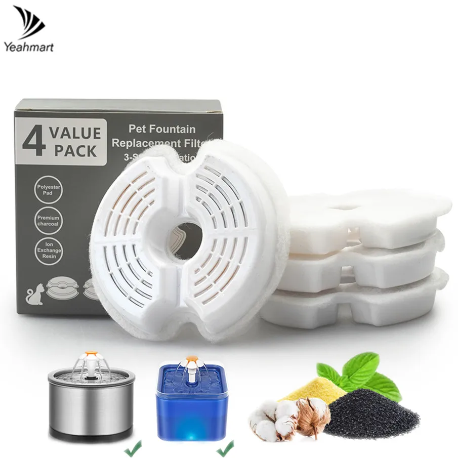 Cada filtro consiste en una capa de algodón, carbón activado, cáscara de coco y una resina de intercambio iónico con rejillas ABS. Puede eliminar eficazmente las impurezas, filtrar el cabello, los olores, ablandar el agua y obtener una mejor degustación del agua. Deje que su mascota beba agua limpia.