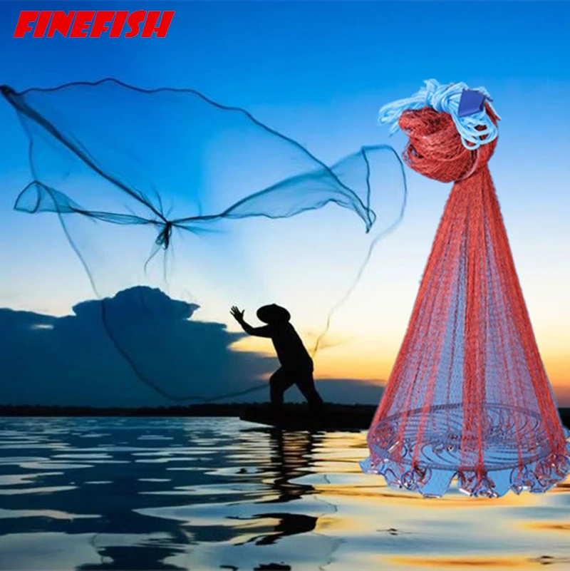 Finefish-red de pesca de plomo de acero, redes fundidas, malla pequeña, fácil de lanzar a mano, red de pesca de agua al aire libre