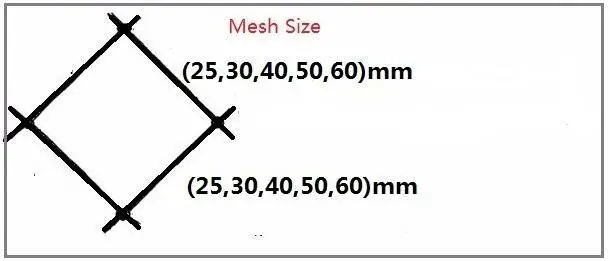 Tamaño de malla: 25mm/30mm/40mm/50mm/60mm
