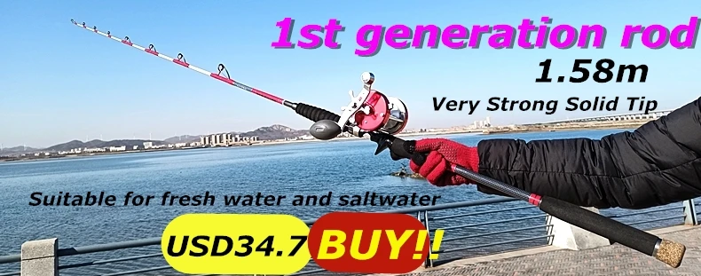 Punta sólida con fibra de carbono.Sería más fuerte y más rígido.No se romperá para luchar contra peces grandes.