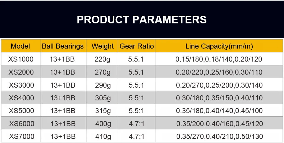 FISH-carrete de pesca giratorio 13 + 1BB, Serie de XS1000-7000 de Metal, aparejos de pesca giratorios