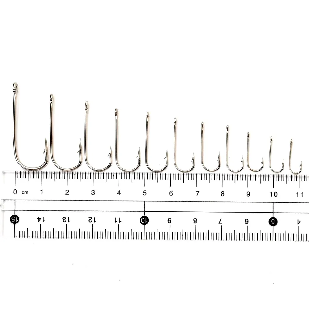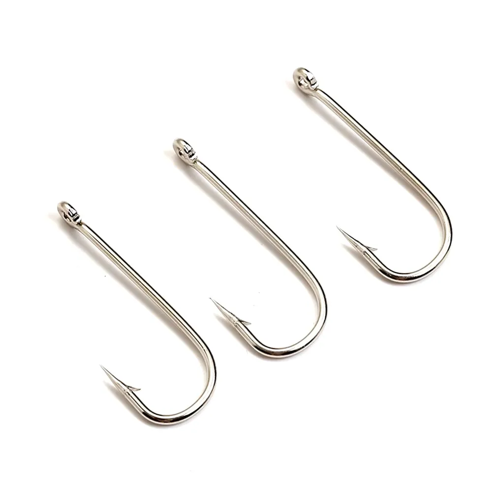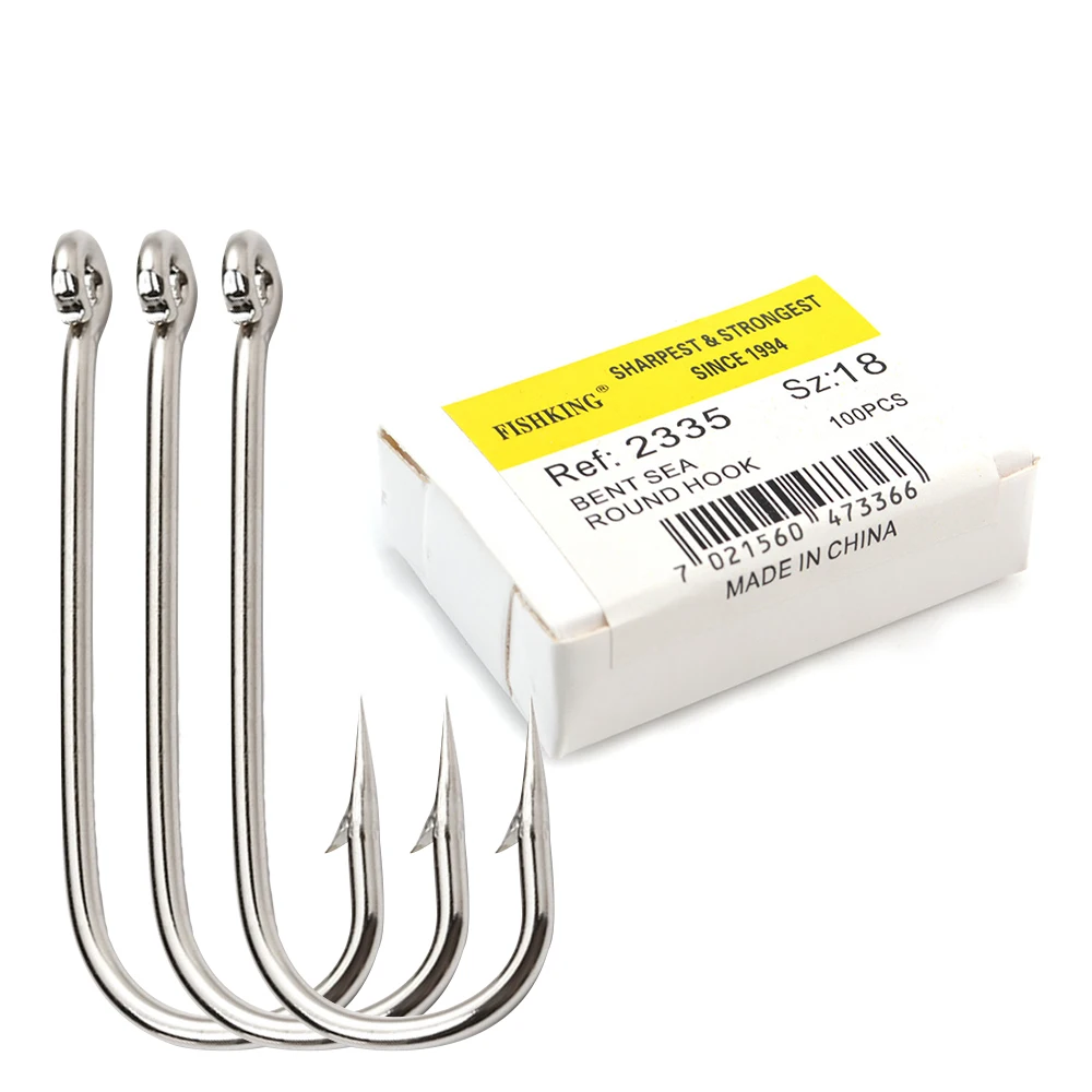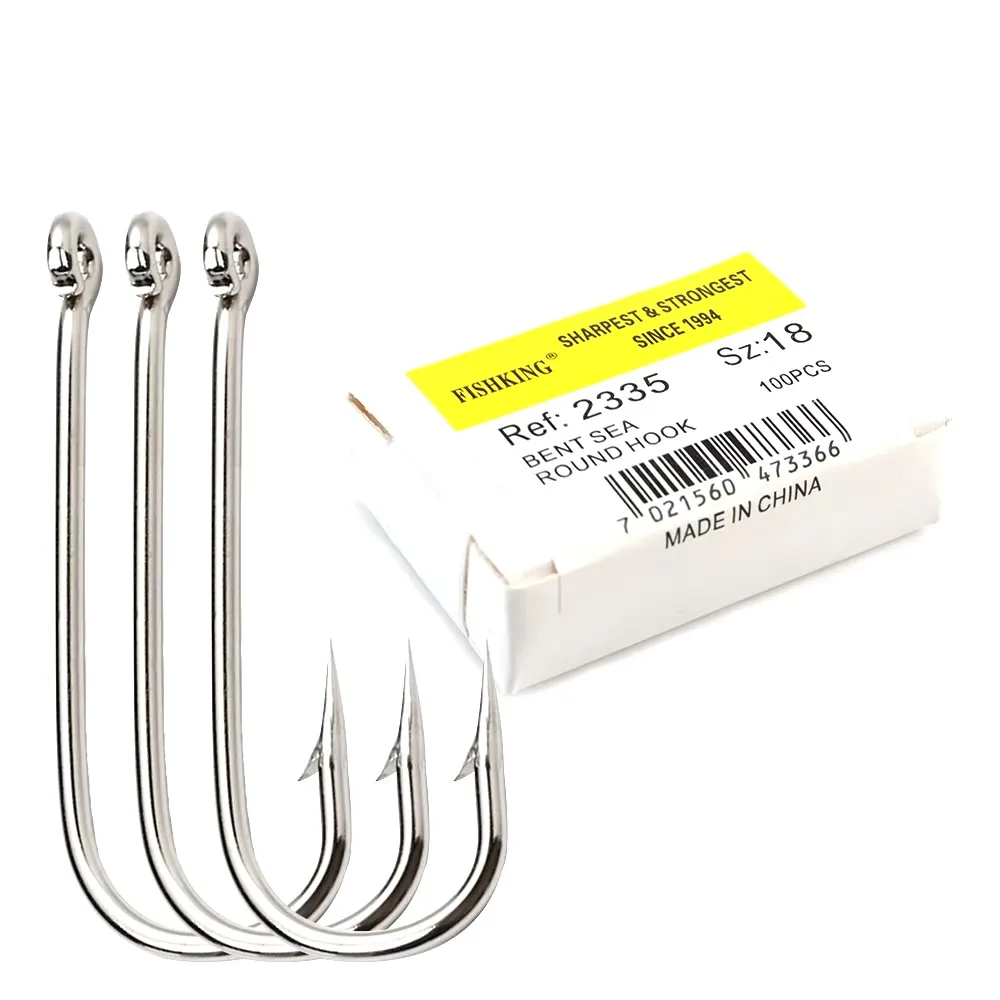 FISH KING 100 Uds 2335 anzuelo de pesca de mar doblado de acero rico en carbono con ojo de níquel 10 # -20 # Gancho de plantilla de púas redondo con anillo