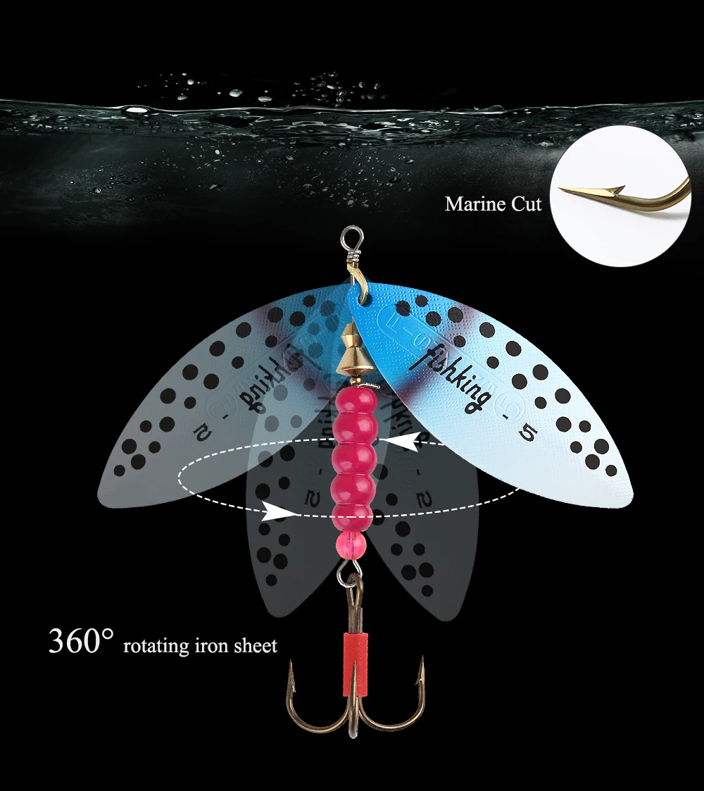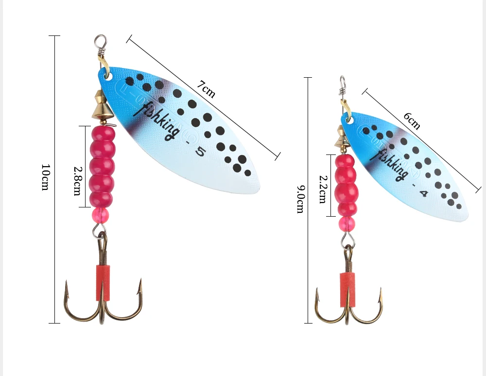FISH KING 2 Color 0 # -5 # Señuelos de lubina con cuchara dura, cebo giratorio con anzuelos triples de acero con alto contenido de carbono para pesca de Lucio
