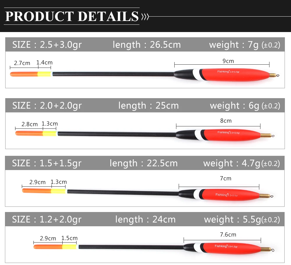 FISH KING 4 unids/pack 2,5 + 3,0g 2,0 + 2,0g 1,5 + 1,5g 1,2 + 2,0g flotador de pesca Bobbers de corcho flotadores de abeto Barguzinsky para aparejos de pesca de mar