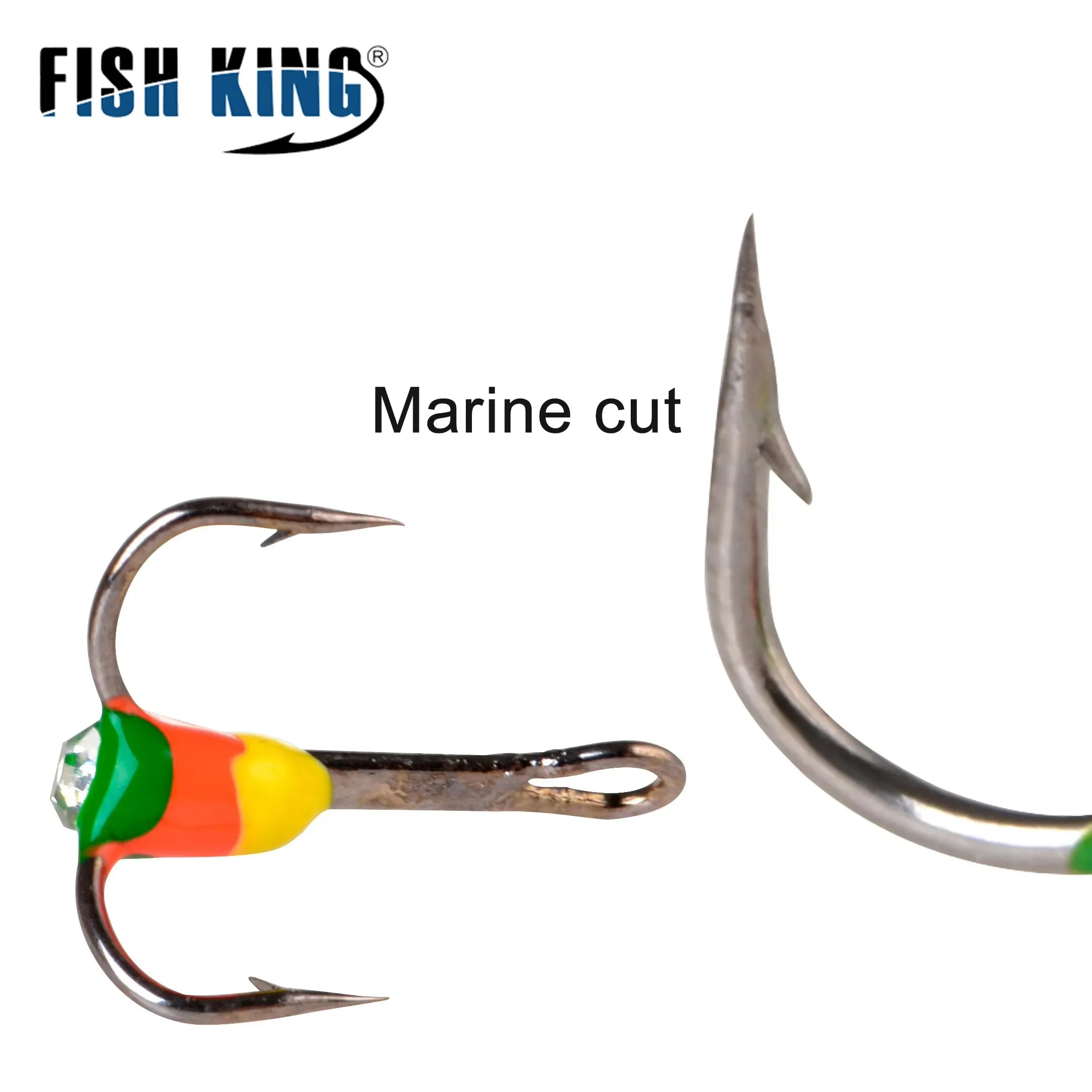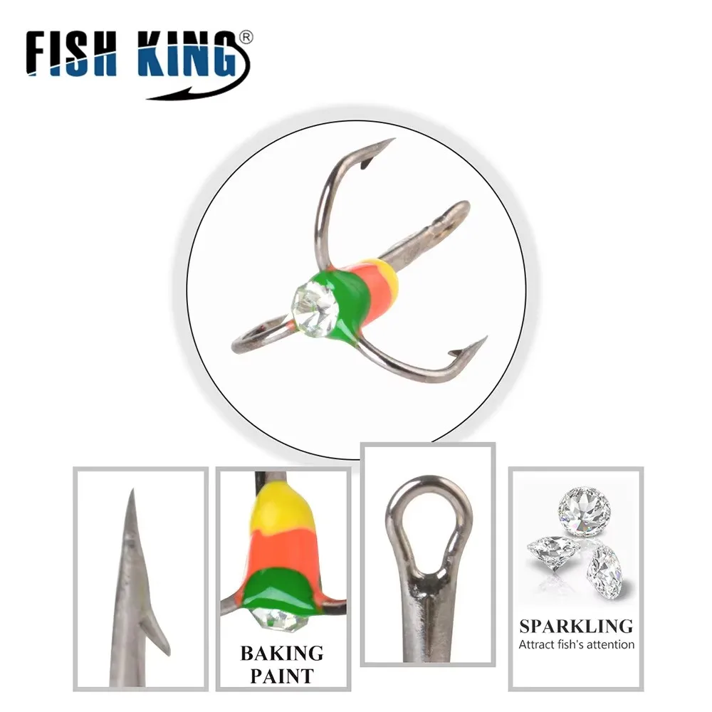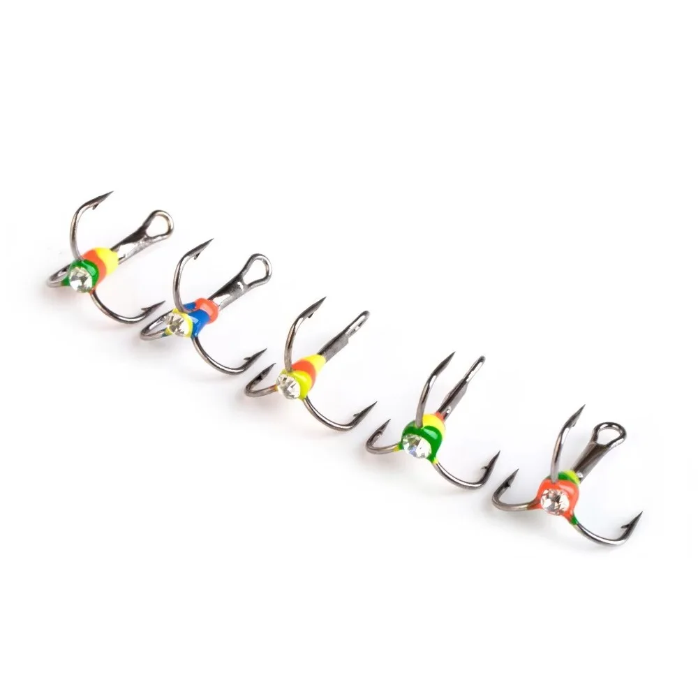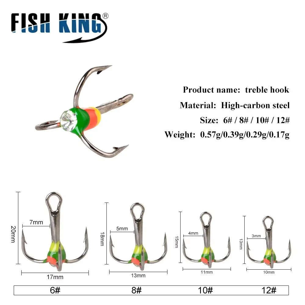 FISH KING 5PCS Anzuelos de pesca triples de invierno con púas 6 # 8 # 10 # 12 # Accesorios de pesca con anzuelo triple de hielo de acero rico en carbono