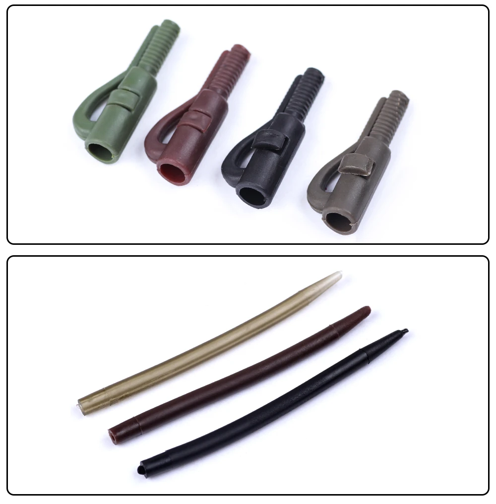 FISH KING-accesorios de pesca de carpa, conector giratorio rodante con mangas antienredos de goma, gancho para aparejos, 10-50 piezas
