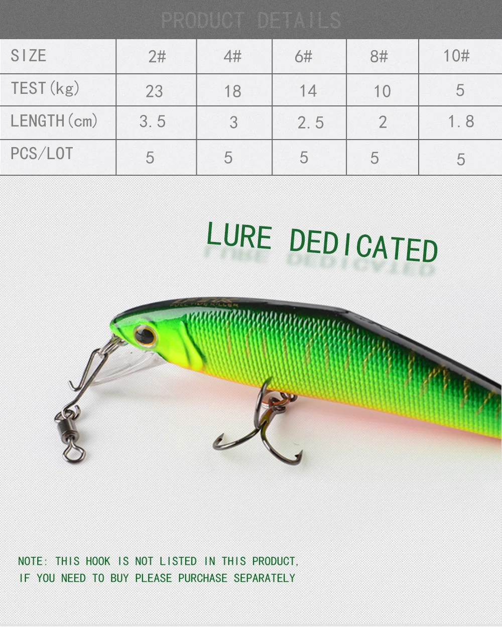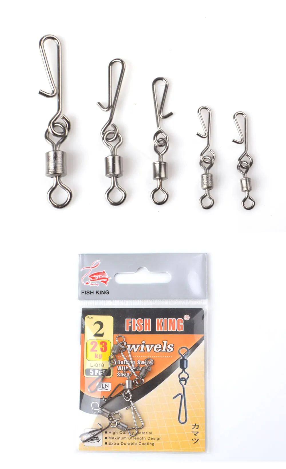 FISH KING-accesorios de pesca giratorios con broche colgante, Conector de señuelo, 5 piezas, 2 #4 #6 #8 #10 #