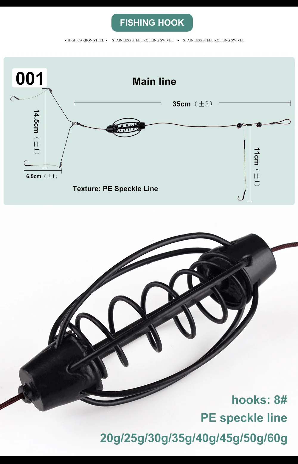FISH KING-alimentador de pesca de carpa, cebos de pesca, jaulas, gancho de 20-60g, conjunto de aparejo, método en línea, aparejos de alimentador, jaula de cebo, herramientas de pesca