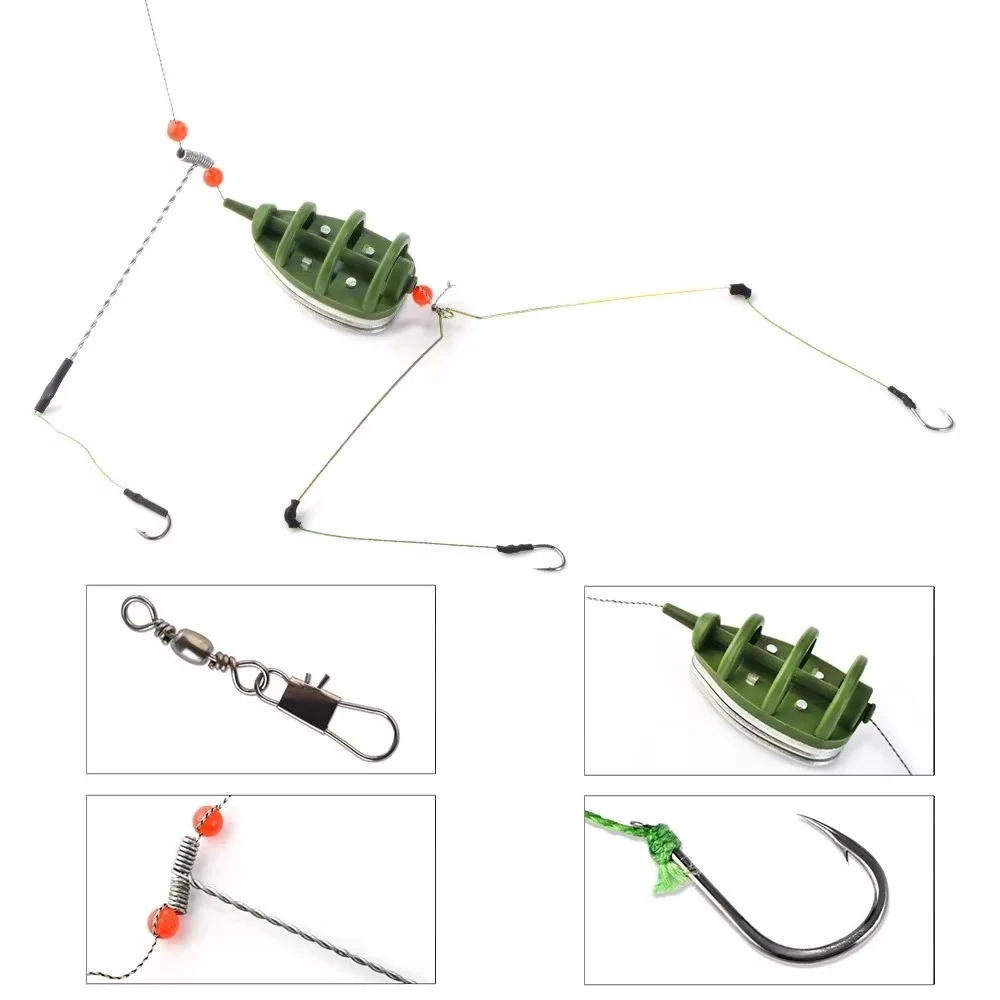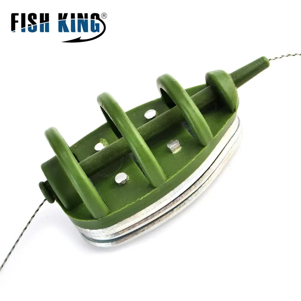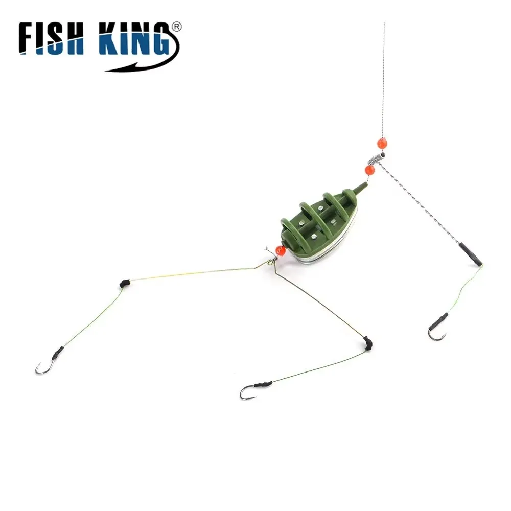 FISH KING-alimentador de pesca de carpa, soporte de jaula de cebo, ganchos de acero de alto carbono, aparejos para el cabello, accesorio de pesca, 60g, 70g, 80g