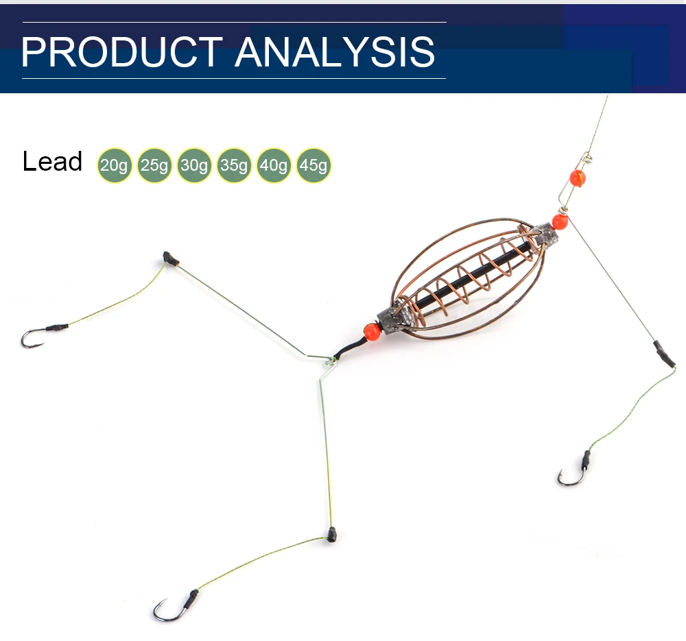 FISH KING-alimentador de pesca de plomo, lanzador de cebo de 20g/25g/30g/35g/40g, alimentador de resorte de pesca con ganchos para accesorios de pesca de carpa