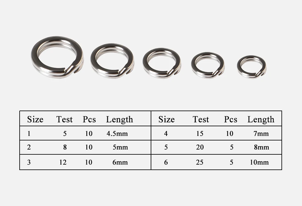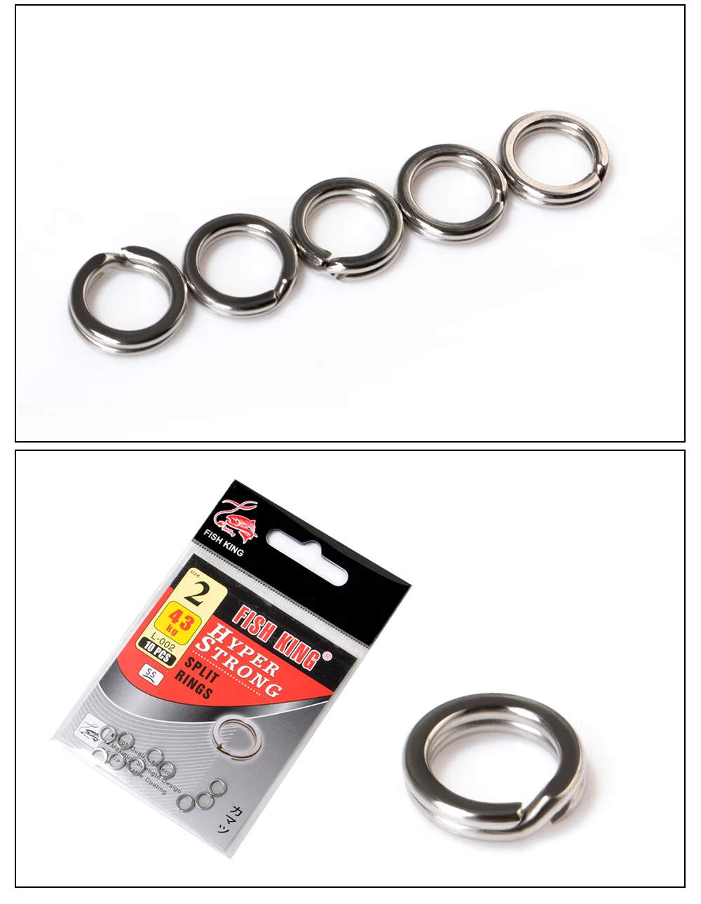 FISH KING-anillo dividido de acero inoxidable, Conector de señuelo de pesca, Pin de rodamiento giratorio, accesorios de pesca, 5-10 piezas