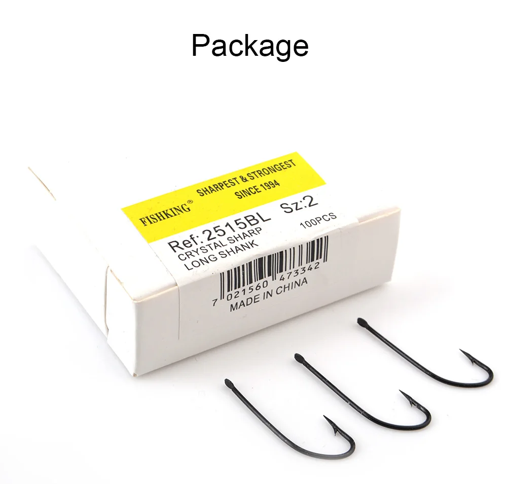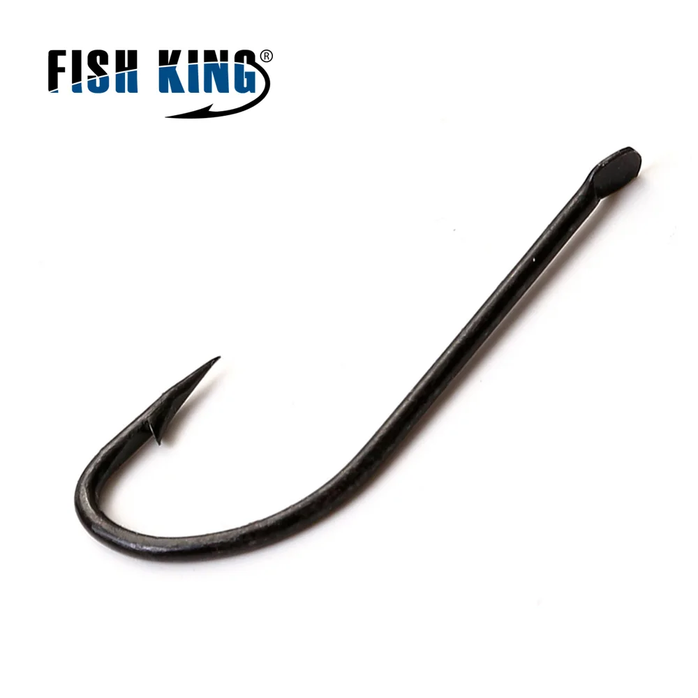 FISH KING-anzuelo de caña larga de acero con alto contenido de carbono, gancho afilado con púas, aparejos de pesca de carpa, 2515BL, 1-17 #, 100 unidades por lote