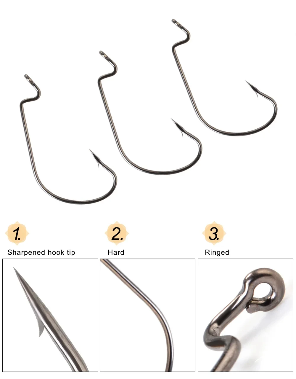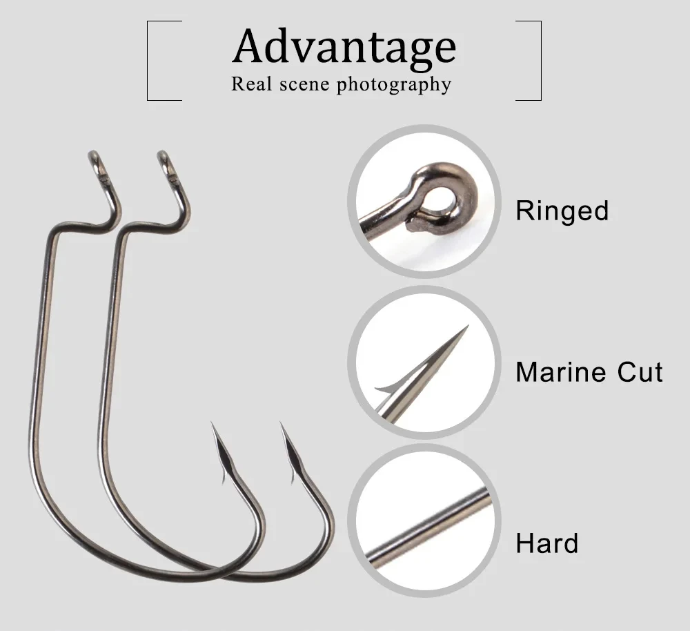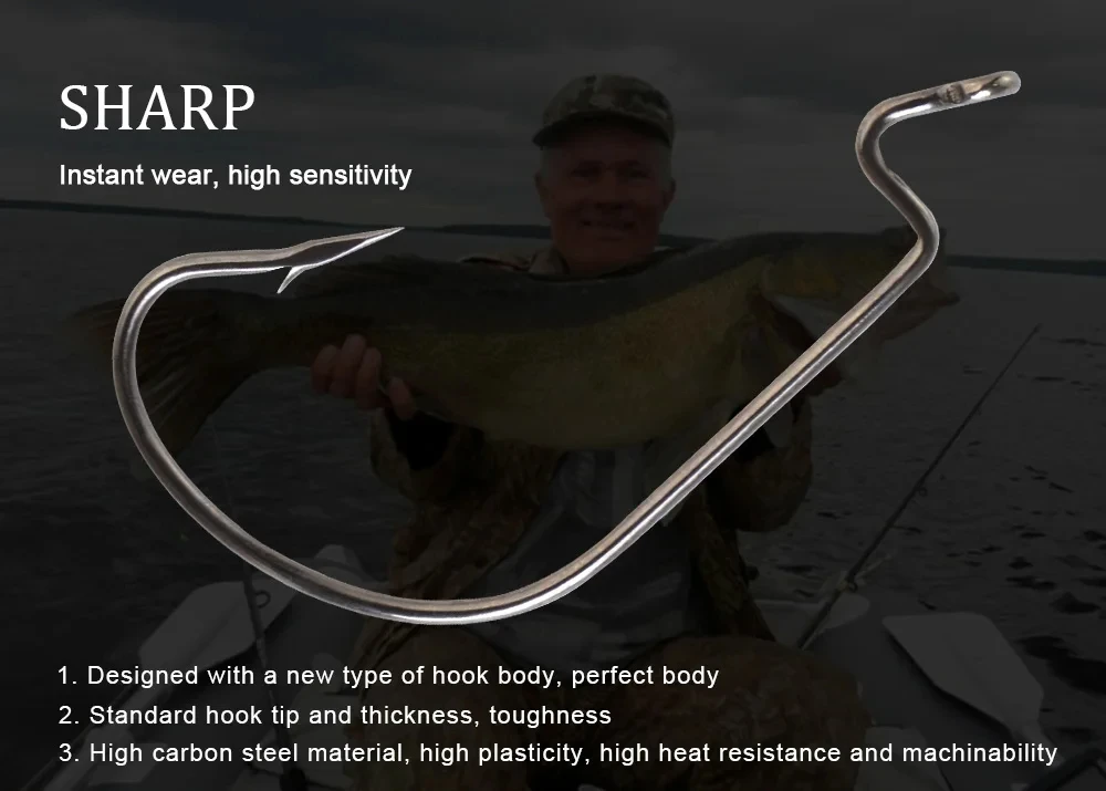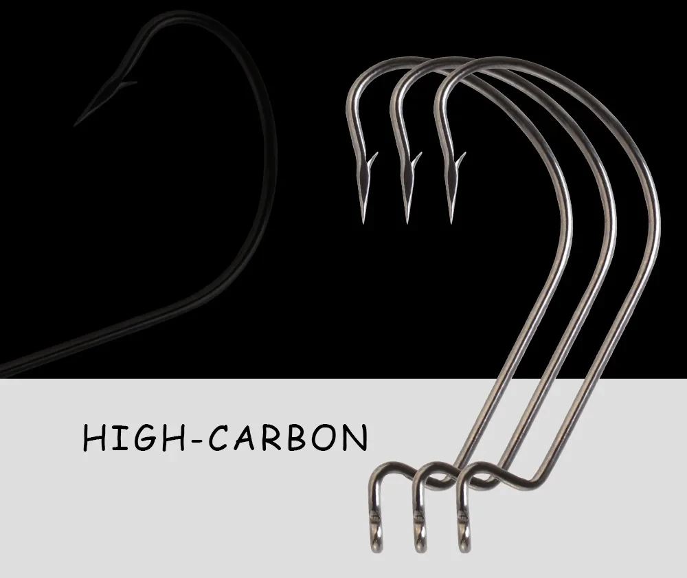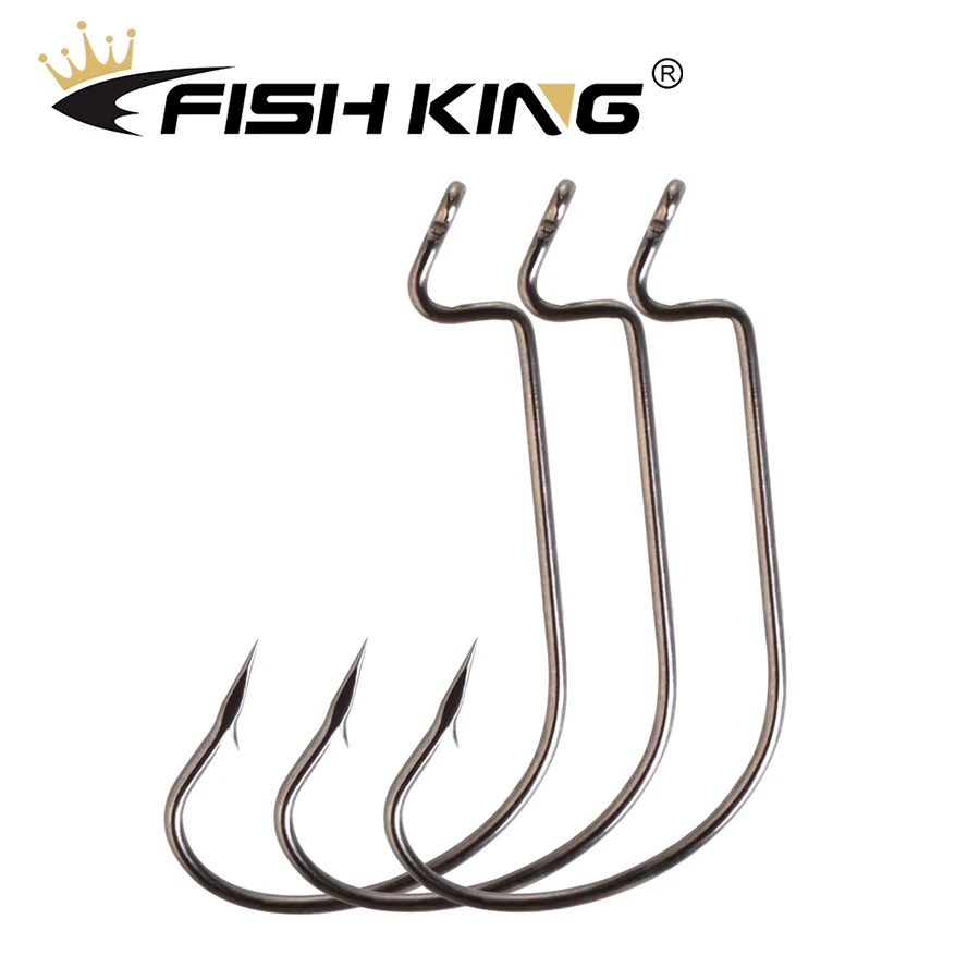 FISH KING-anzuelo de manivela de alta resistencia, anzuelo de púas, pesca de acero al carbono para señuelo de pesca suave, anzuelos de manivela de vientre ancho