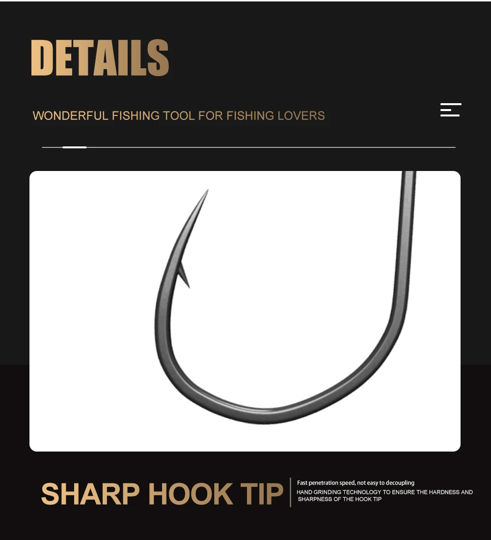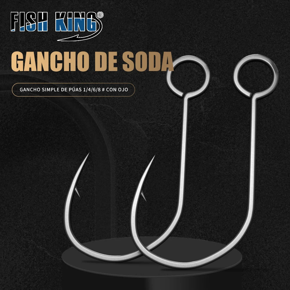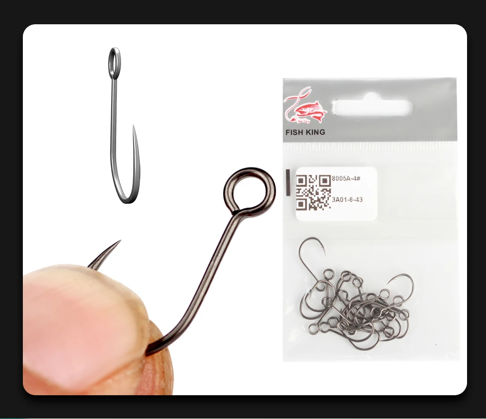 FISH KING-anzuelo de manivela de pesca, aparejos de pesca con púas, ojo grande, afilado, acero al carbono, anzuelos individuales, accesorios para carpa, 20 piezas