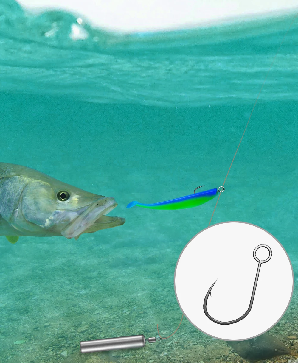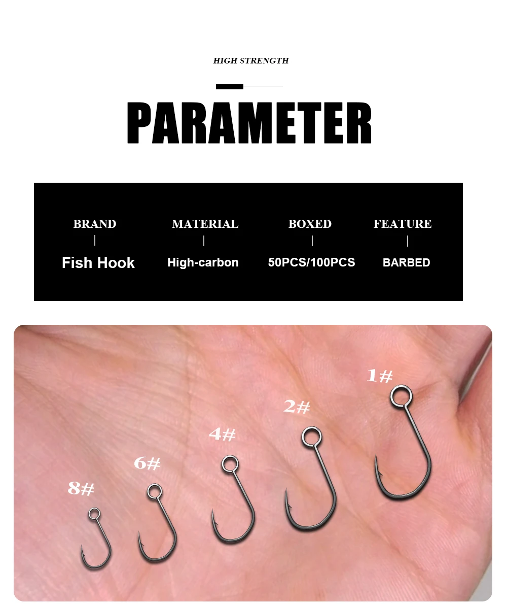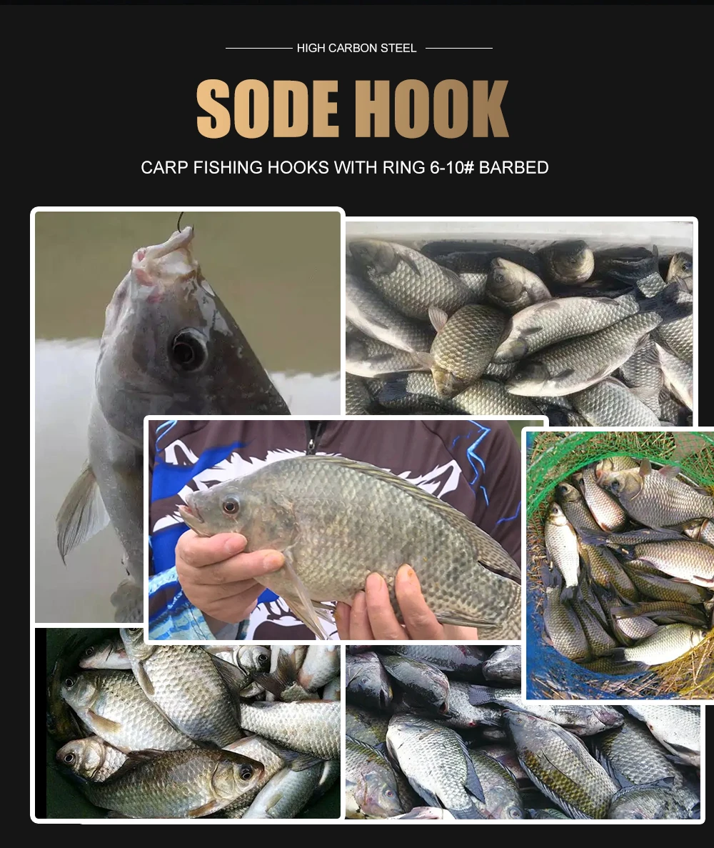 FISH KING-anzuelo de manivela de pesca, aparejos de pesca con púas, ojo grande, afilado, acero al carbono, anzuelos individuales, accesorios para carpa, 20 piezas