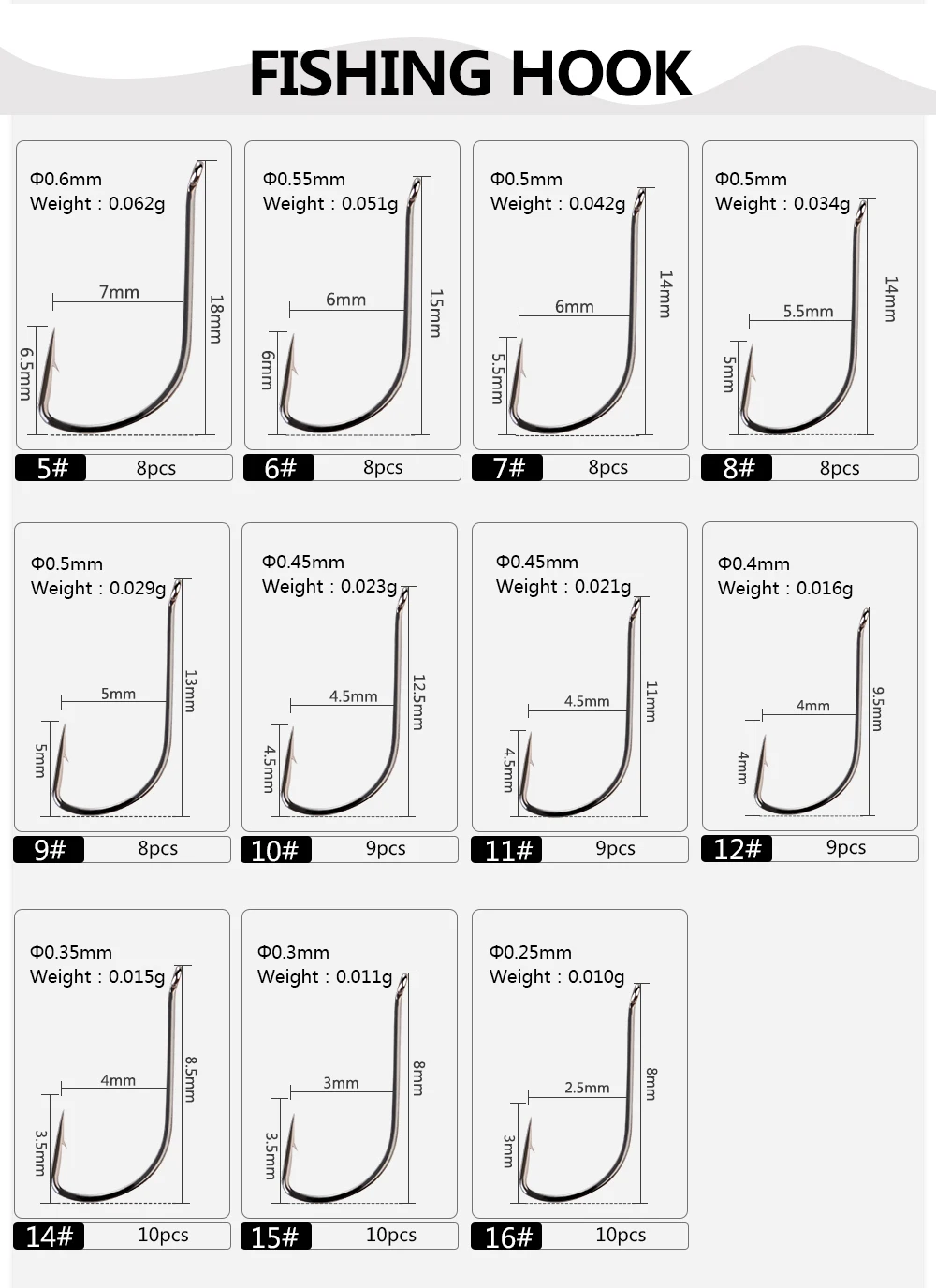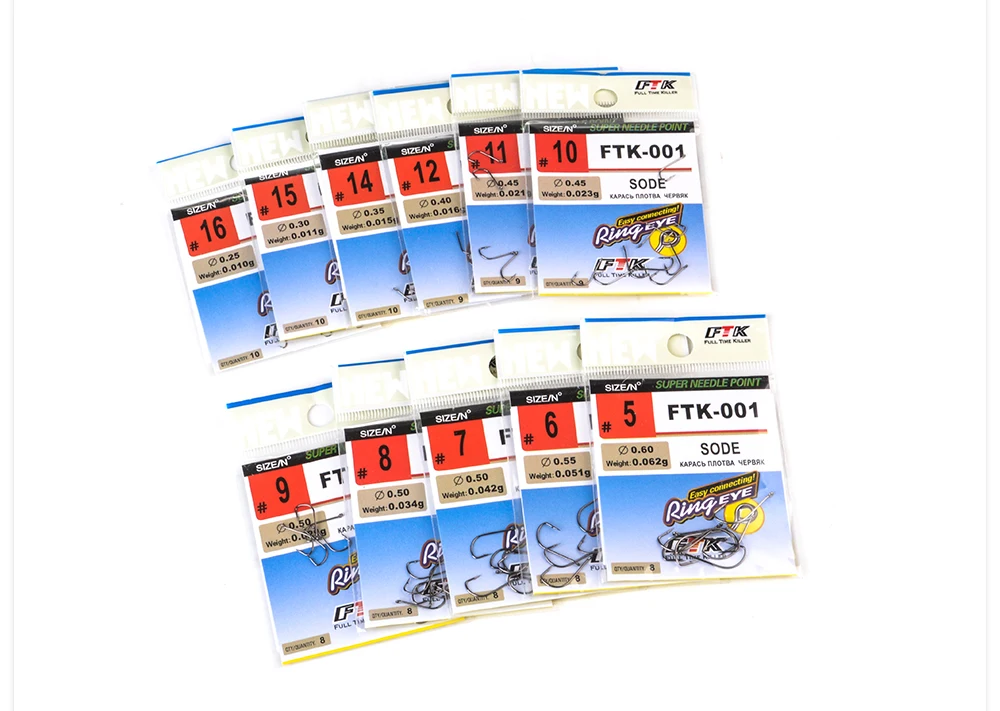 FISH KING-anzuelo de pesca de acero al carbono con púas, anzuelos de pesca de 8-10 piezas, tamaño de anillo 5-16 #