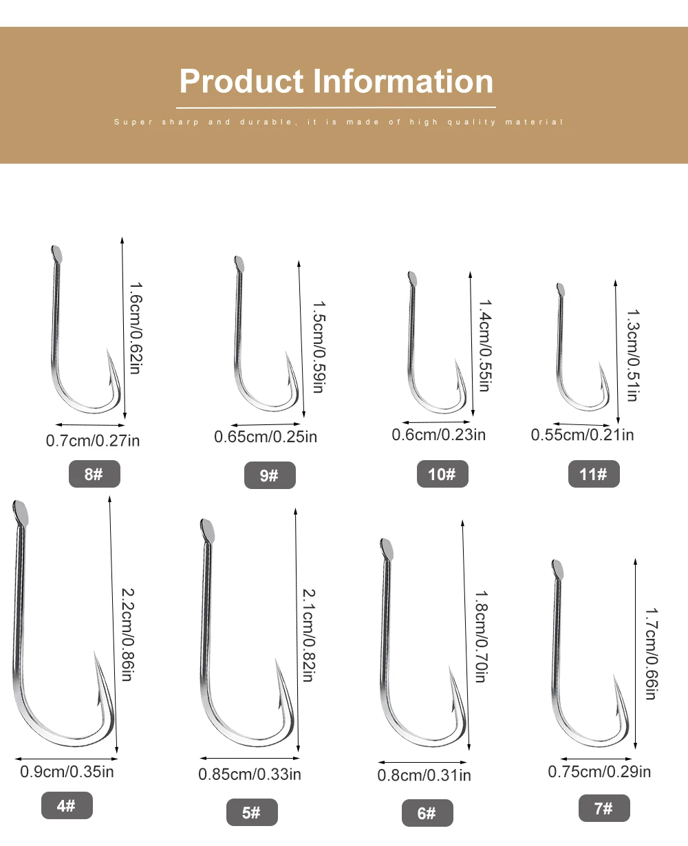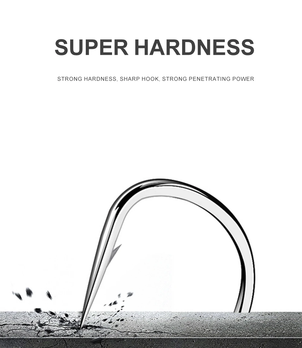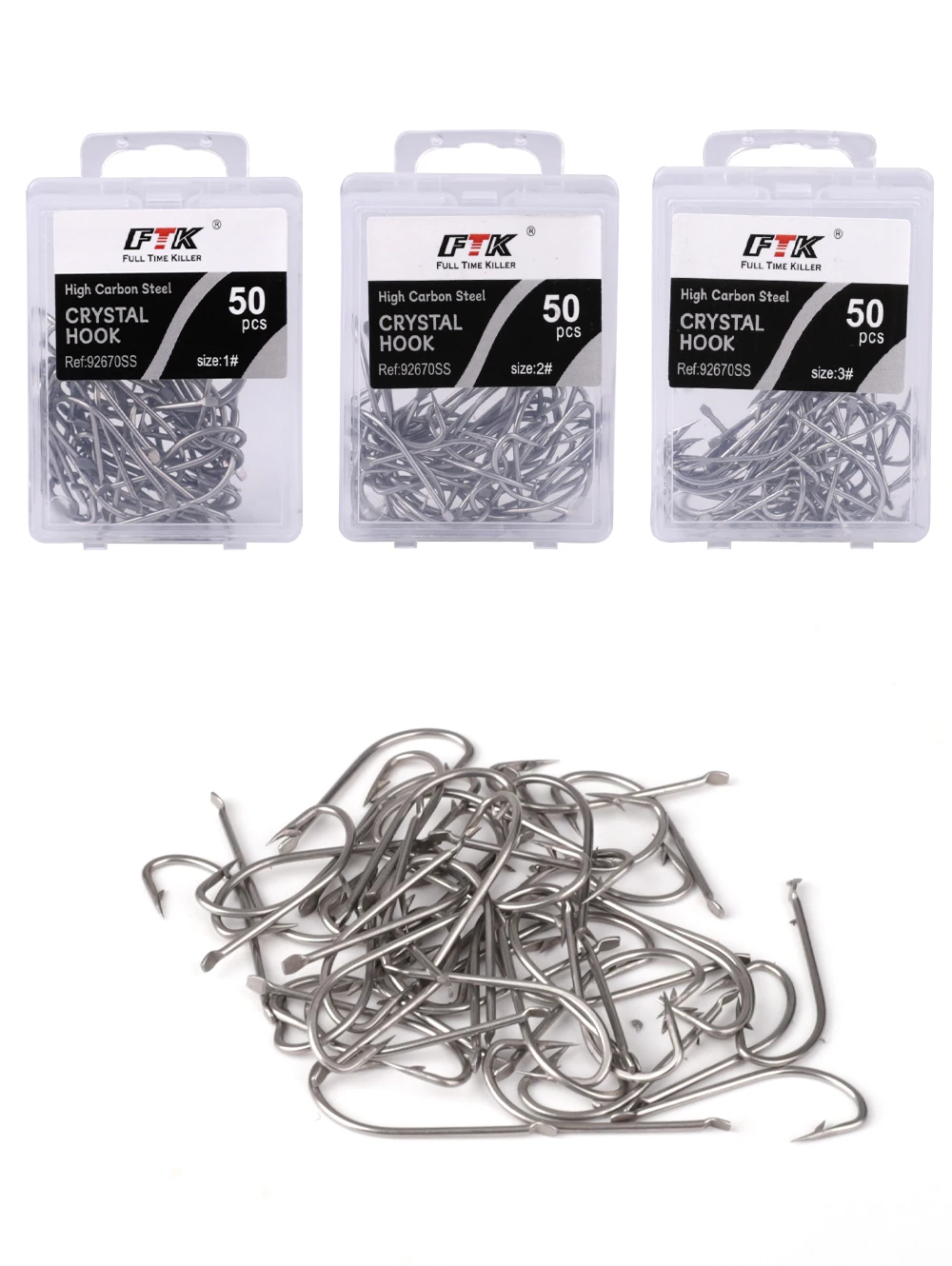 FISH KING-anzuelo de pesca de acero rico en carbono, anzuelo de púas, 50 Uds., anzuelo de gusano de cuerpo aplanado para lubina, accesorios de pesca de carpa