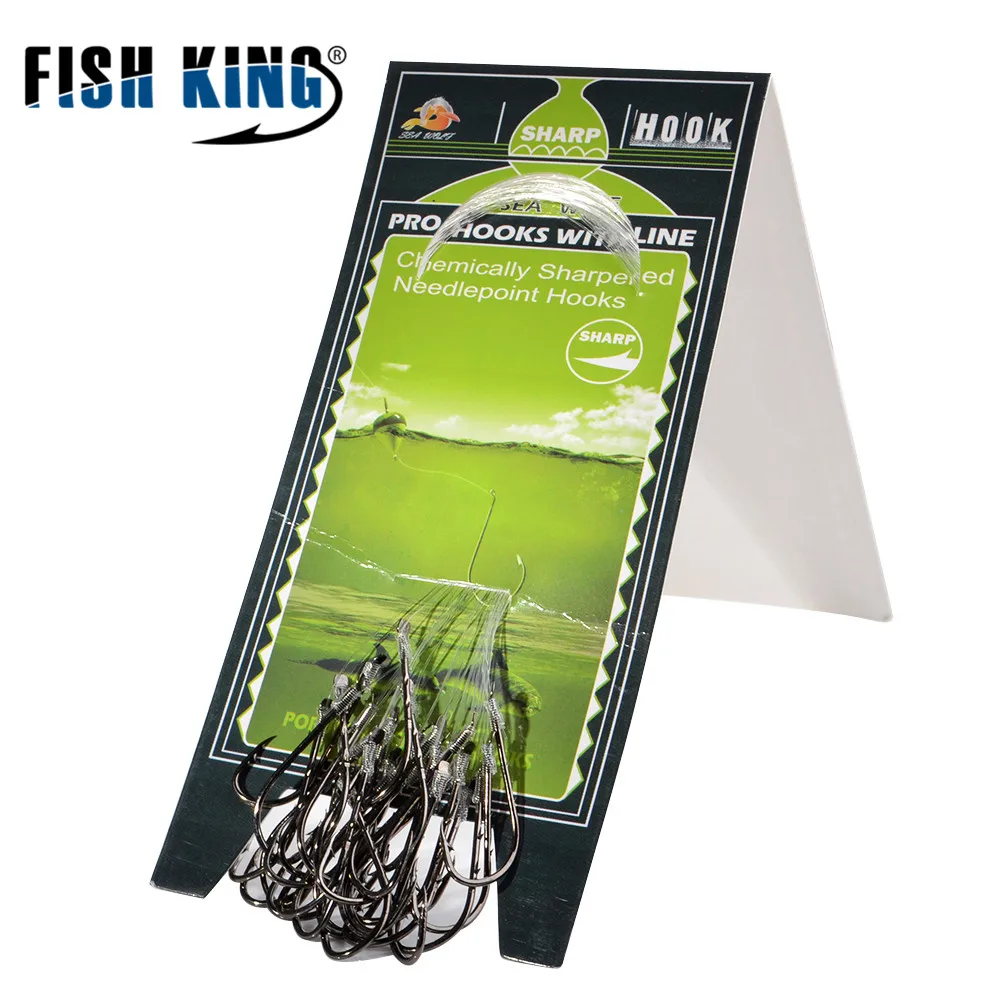 FISH KING-anzuelo de pesca con línea de 30 unids/lote, Combo de anzuelos de carpa con púas, accesorios para el cabello, aparejos para pescar, 10 #-1 #