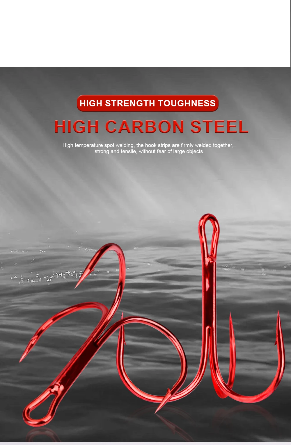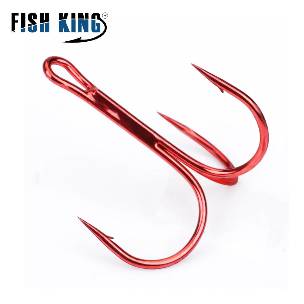 FISH KING-anzuelo de pesca de lubina, anzuelo rojo triple, 2/0 #1/0 #1 #2 #4 #6 #, soporte de señuelo, juego de anzuelos de manivela, aguja de agua salada