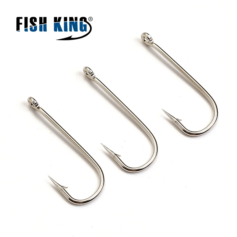 FISH KING-anzuelo de pesca redondo de acero con alto contenido de carbono, anzuelo de púas con anillo 10-20 #, accesorios de pesca de carpa, 100, piezas, 2335