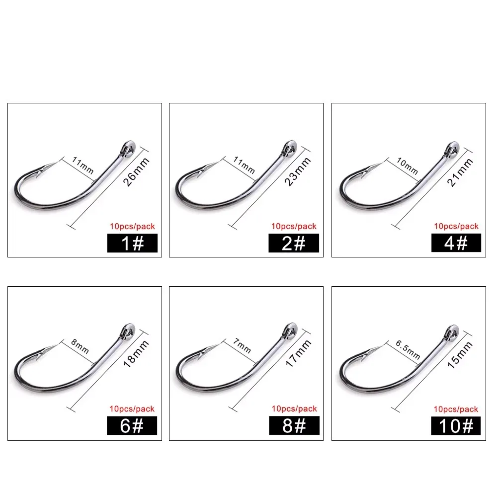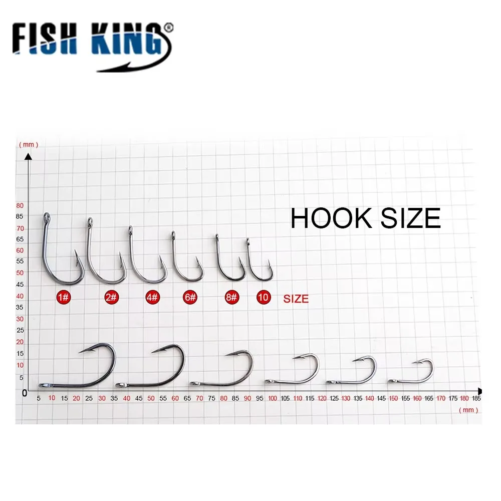 FISH KING-anzuelos de pesca de carpa, 10 piezas, acero al carbono, 1 #-10 #, gancho individual de púas de Europa con anillo alimentador, accesorios de pesca