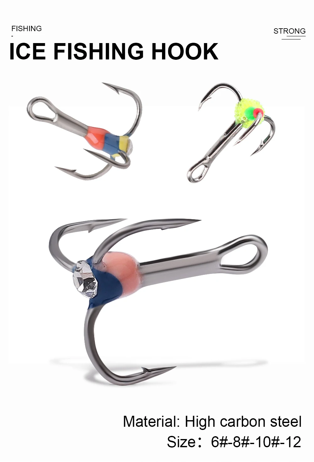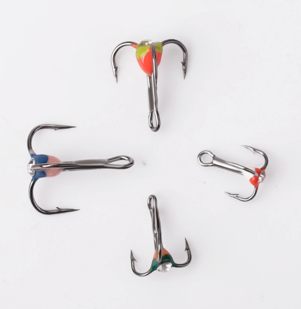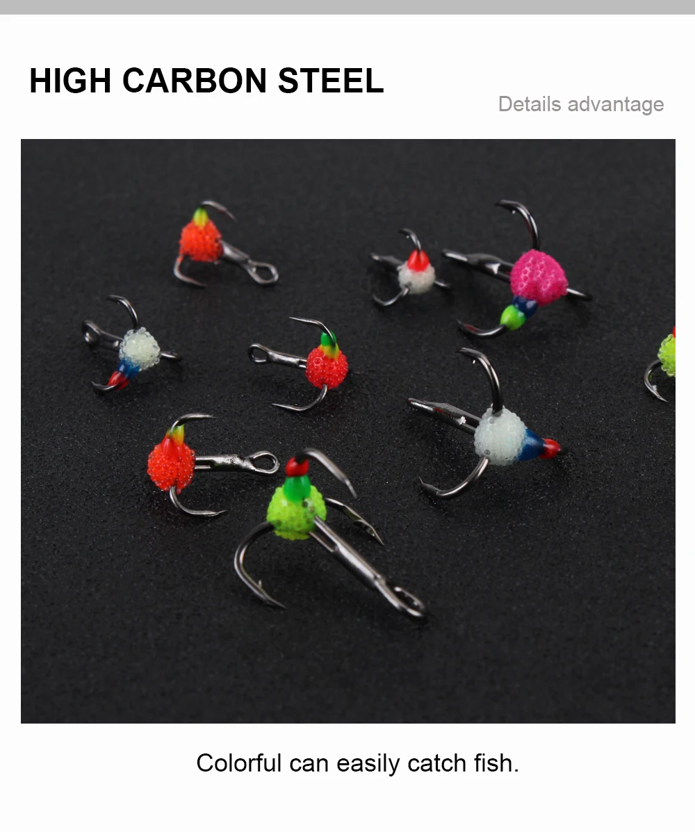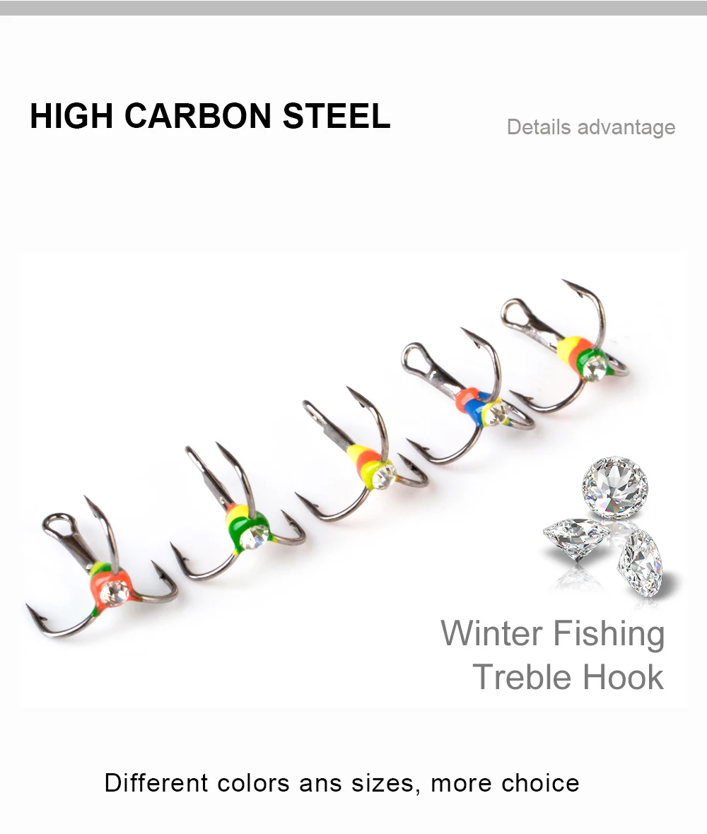FISH KING-anzuelos de pesca en hielo, señuelo Artificial duro de acero rico en carbono, anzuelos triples con púas para pesca de lubina y carpa de invierno, 5 uds.