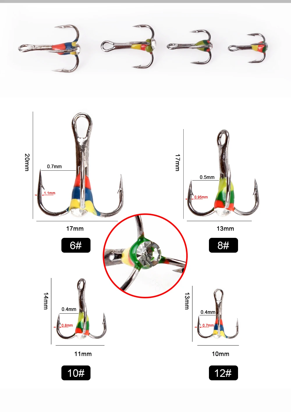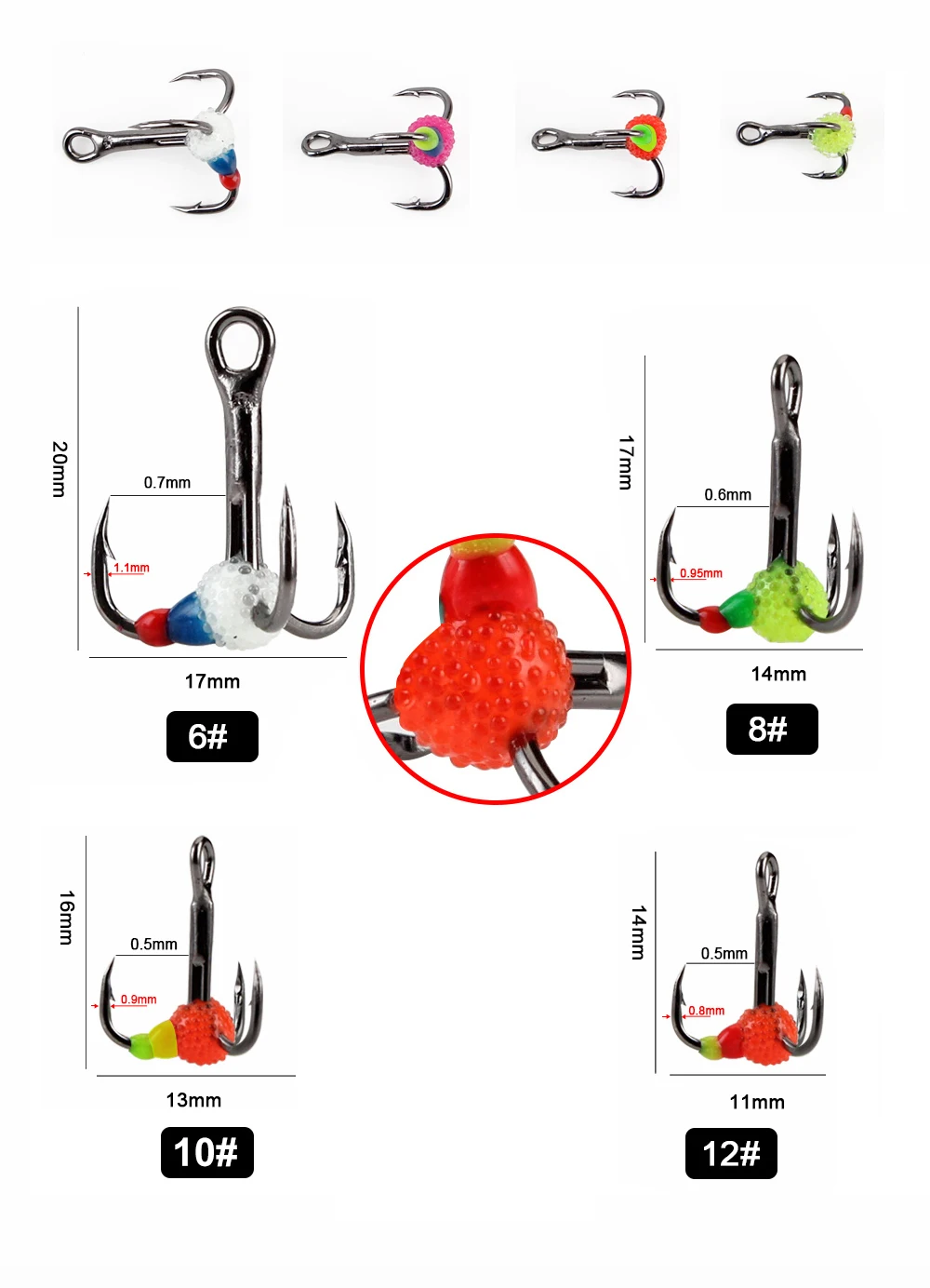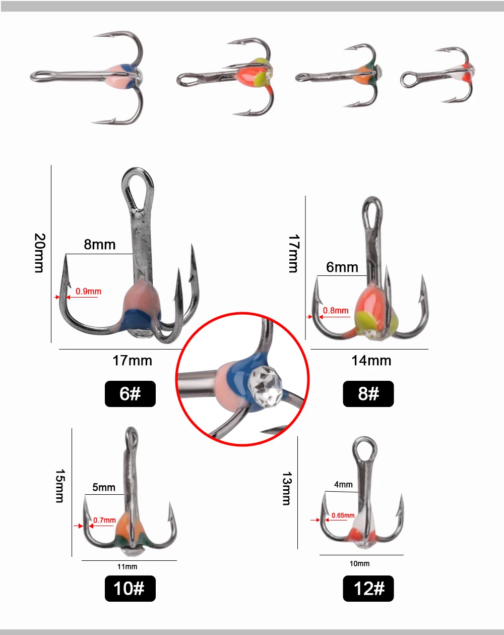 FISH KING-anzuelos de pesca en hielo, señuelo Artificial duro de acero rico en carbono, anzuelos triples con púas para pesca de lubina y carpa de invierno, 5 uds.