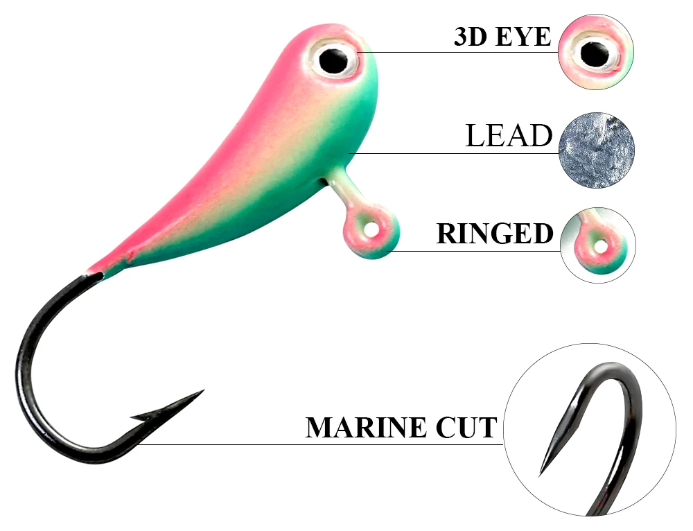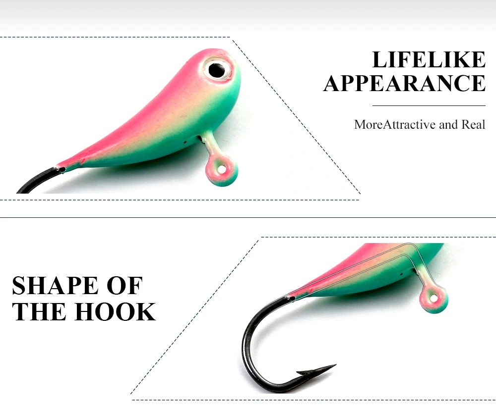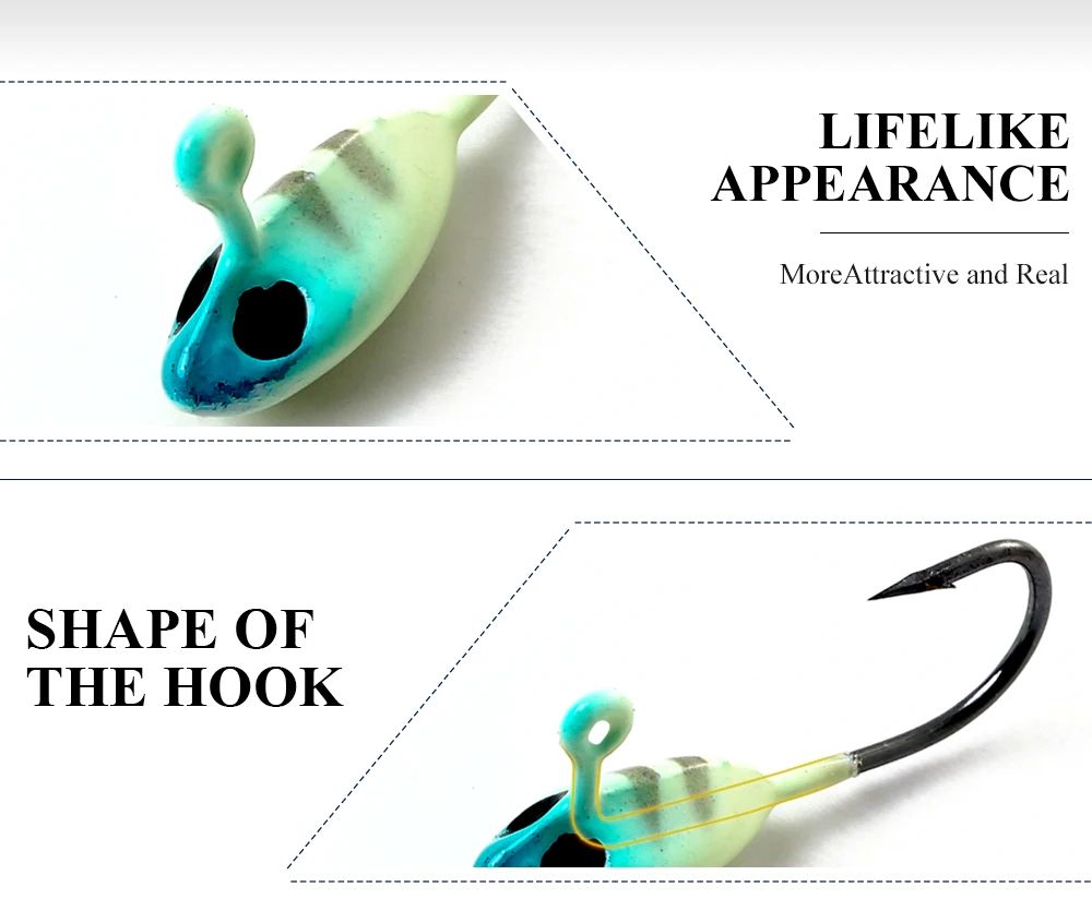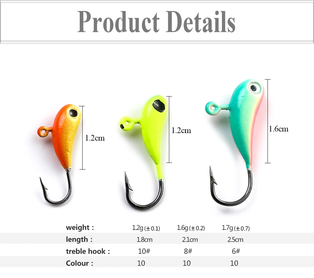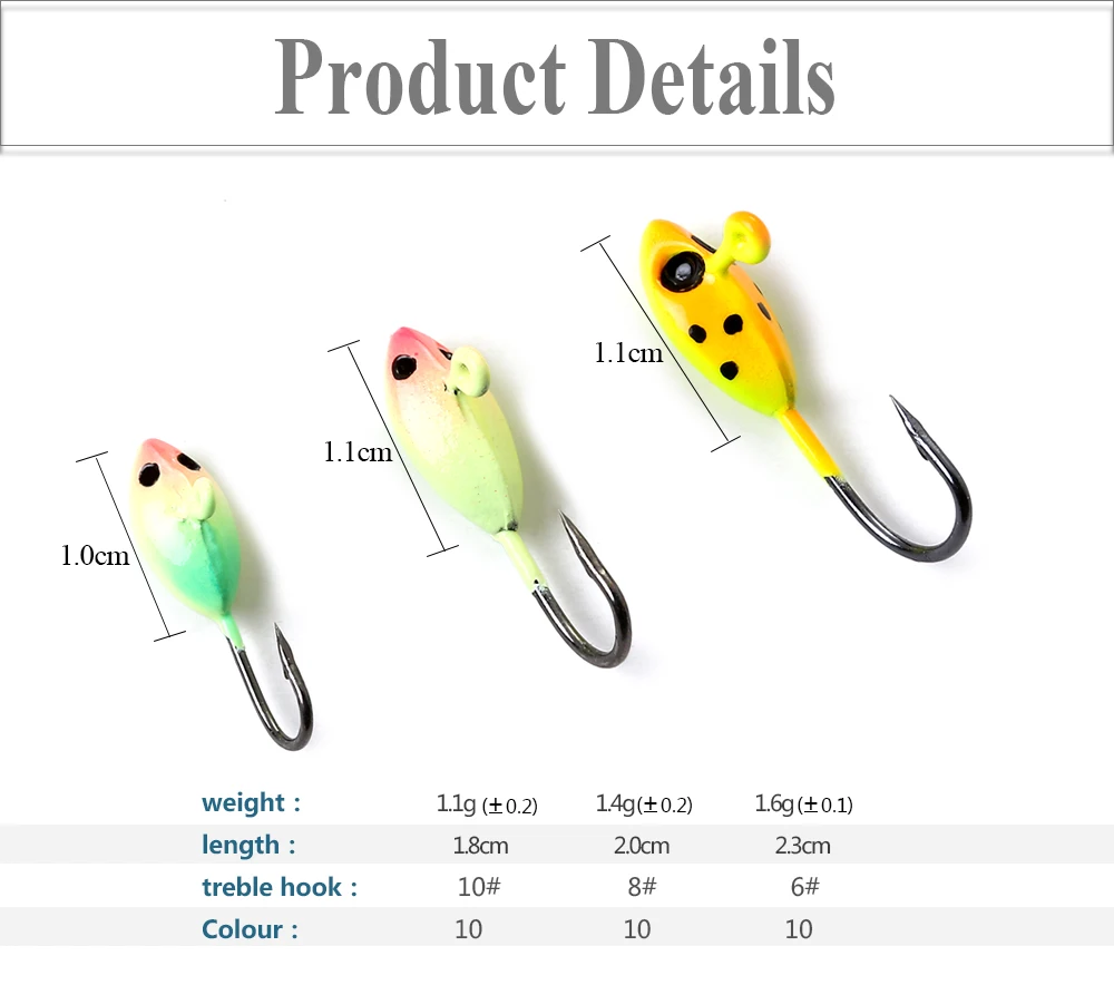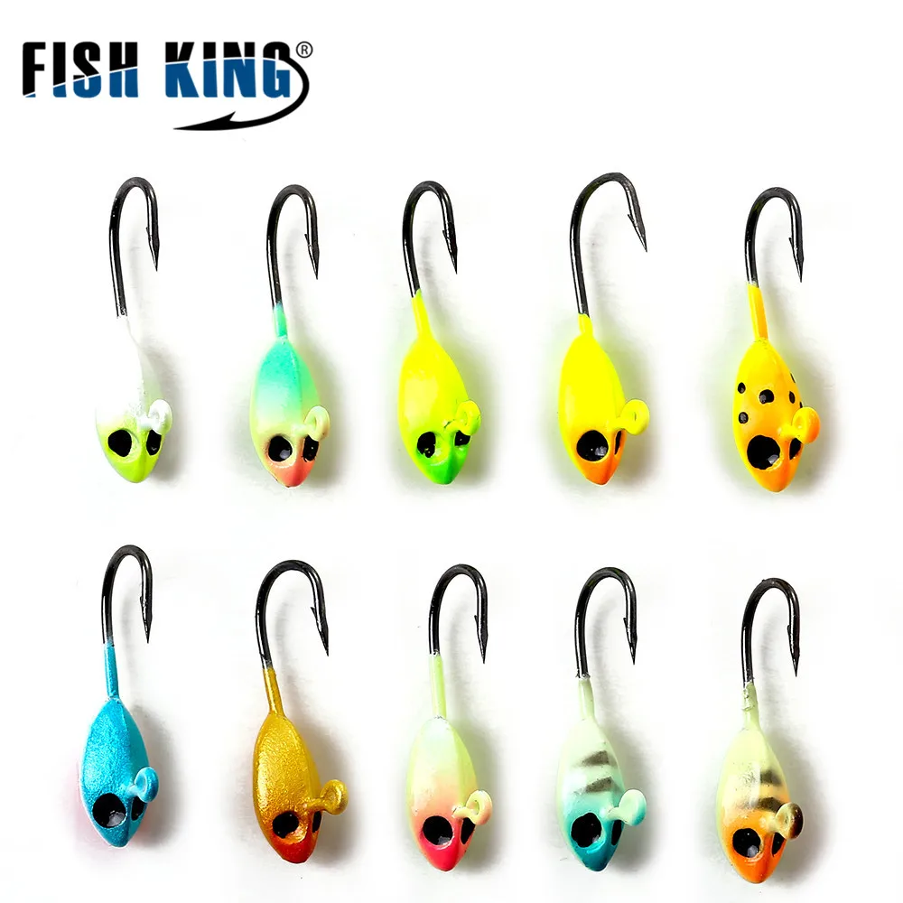 FISH KING-anzuelos de pesca de hielo, 5/10 piezas, con ojos 3D, 1,1g, 1,2g, 1,4g, 1,6g, 1,7g, gancho de invierno