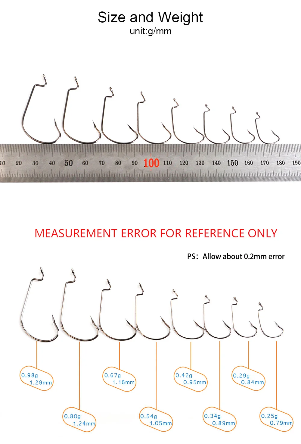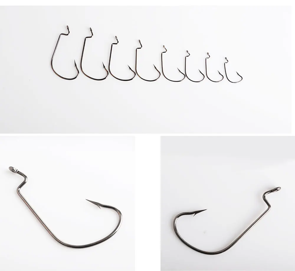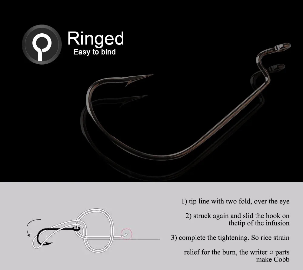 FISH KING-anzuelos de Pesca de Japón, señuelo suave con mango de gusano Offset, Círculo de acero al carbono, 4/0, 3/0, 2/0, 1/0, 1, 2, 4